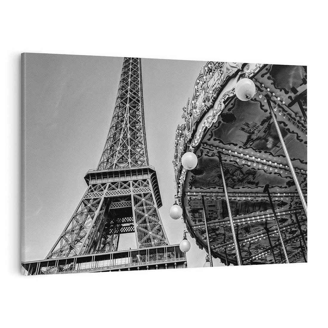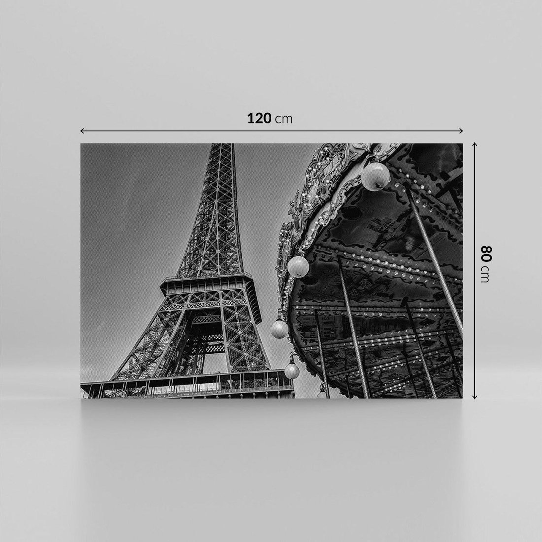 Obraz na płótnie 120x80 - Zabawa w Paryżu - czarno białe zdjecie, wieża eiffla