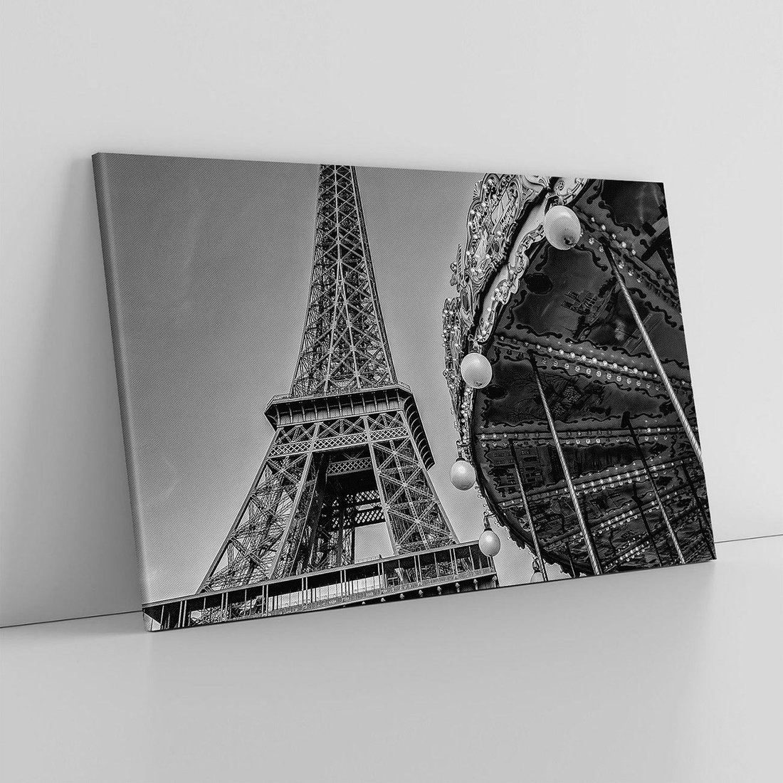 To czarno-białe zdjęcie przedstawia Wieżę Eiffla w Paryżu w towarzystwie urokliwej karuzeli. To ikoniczna scena z francuskiej stolicy, która łączy w sobie zarówno nowoczesność symbolizowaną przez wieżę, jak i klasyczną, nostalgiczną atmosferę karuzeli. To zdjęcie przenosi nas do magicznego świata Paryża, gdzie historia i nowoczesność spotykają się w niezwykły sposób. Jest to doskonała dekoracja dla tych, którzy pragną poczuć magię tego pięknego miasta.