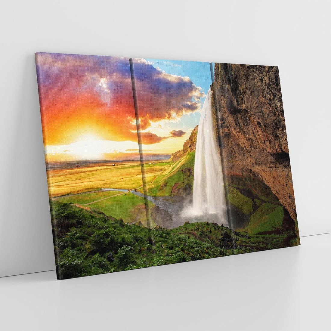 Obraz na płótnie 120x80 - Zachód słońca nad islandzkim wodospadem - Islandia, wodospad
