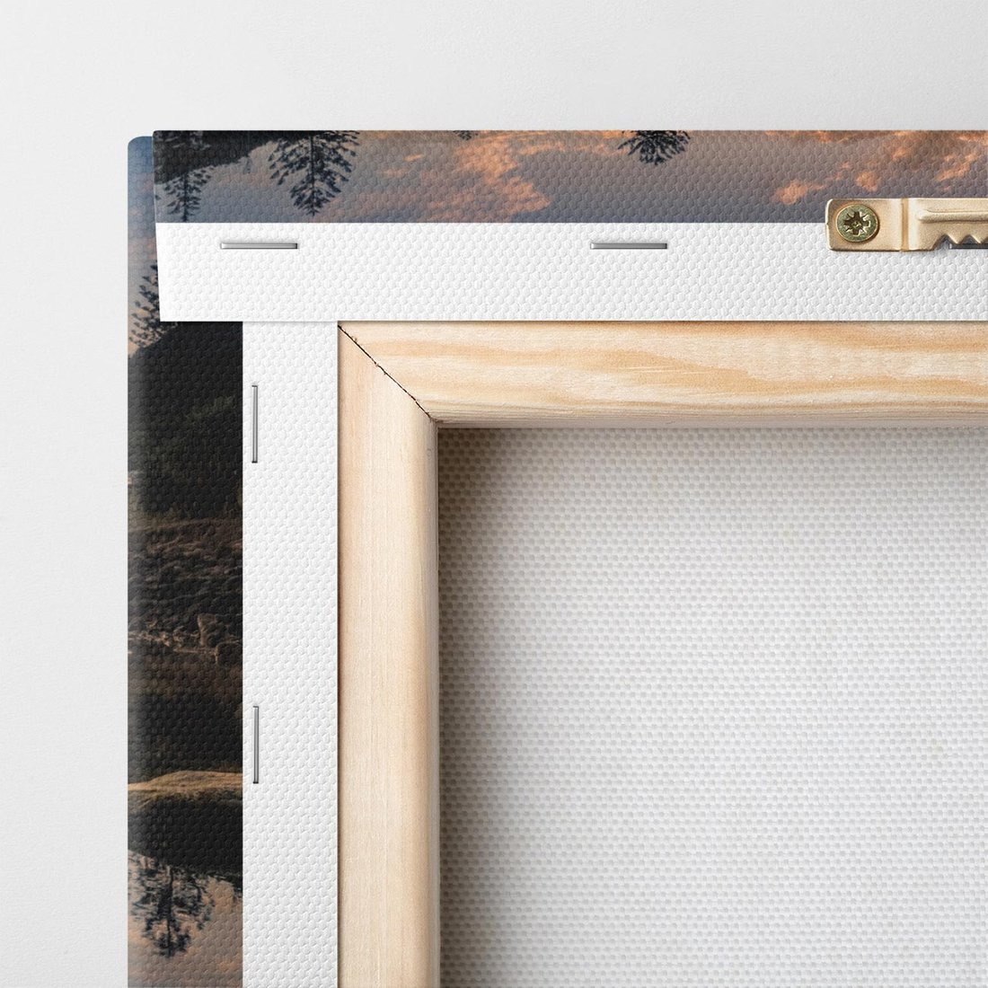 Ten ujmujący obraz ukazuje malowniczy zachód słońca nad jeziorem. Jego odcienie i odbicie na spokojnej tafli wody tworzą atmosferę spokoju i harmonii. To dzieło sztuki wprowadzi do Twojego wnętrza wyciszenie i relaks, pozwoli odpocząć od zgiełku codzienności.