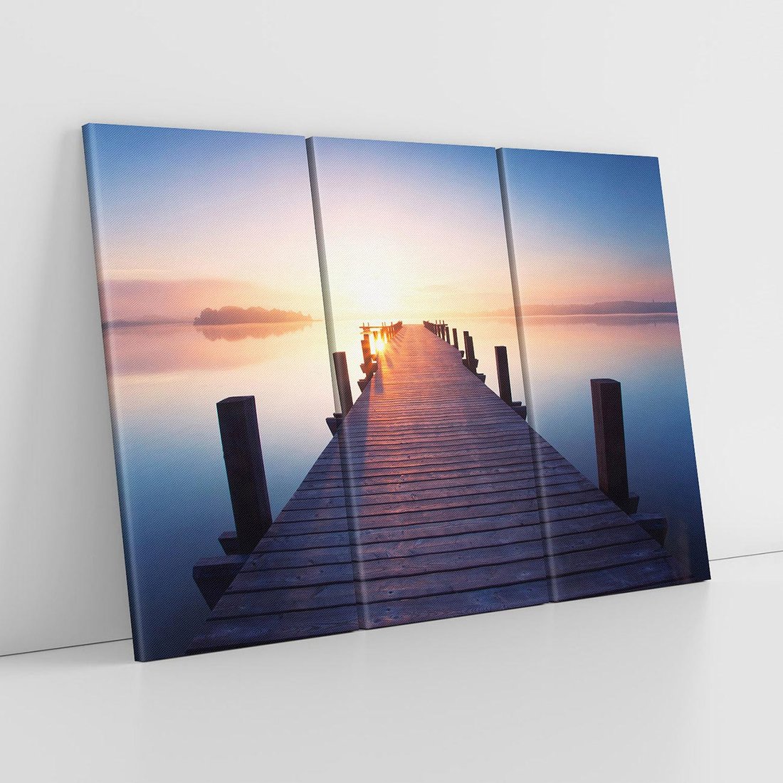 - Obraz na płótnie 120x80 - Zachód słońca nad molo: Magia morza