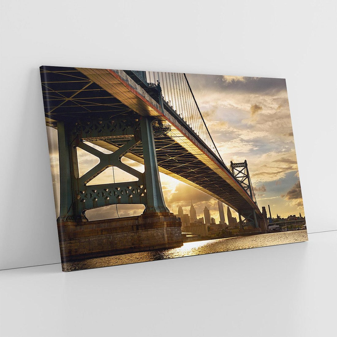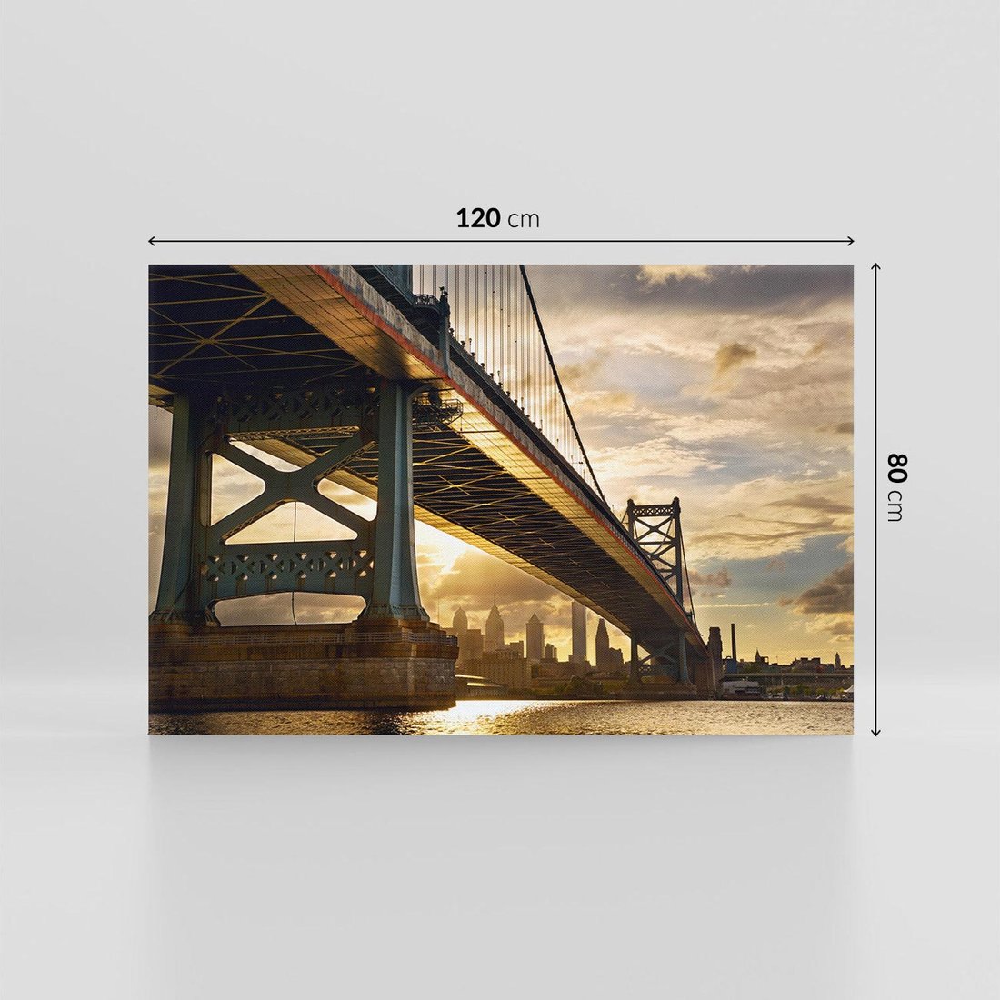 Obraz na płótnie 120x80 - Zachód Słońca nad Mostem: Filadelfia USA - Filadelfia, most