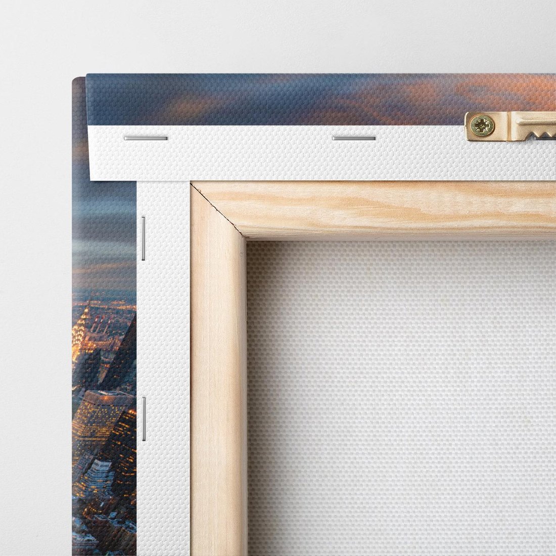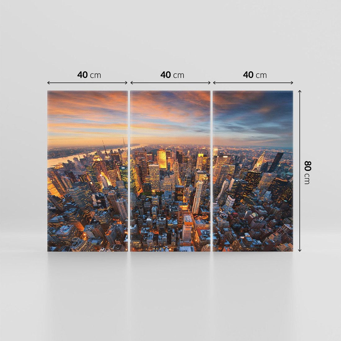 Ten malowniczy obraz ukazuje zachód słońca nad Nowym Jorkiem. Jego złote odcienie, kontury wieżowców i magiczna atmosfera oddają urok tego amerykańskiego miasta. Dodaj nutę miejskiego romantyzmu i spektakularnych widoków do swojego wnętrza.