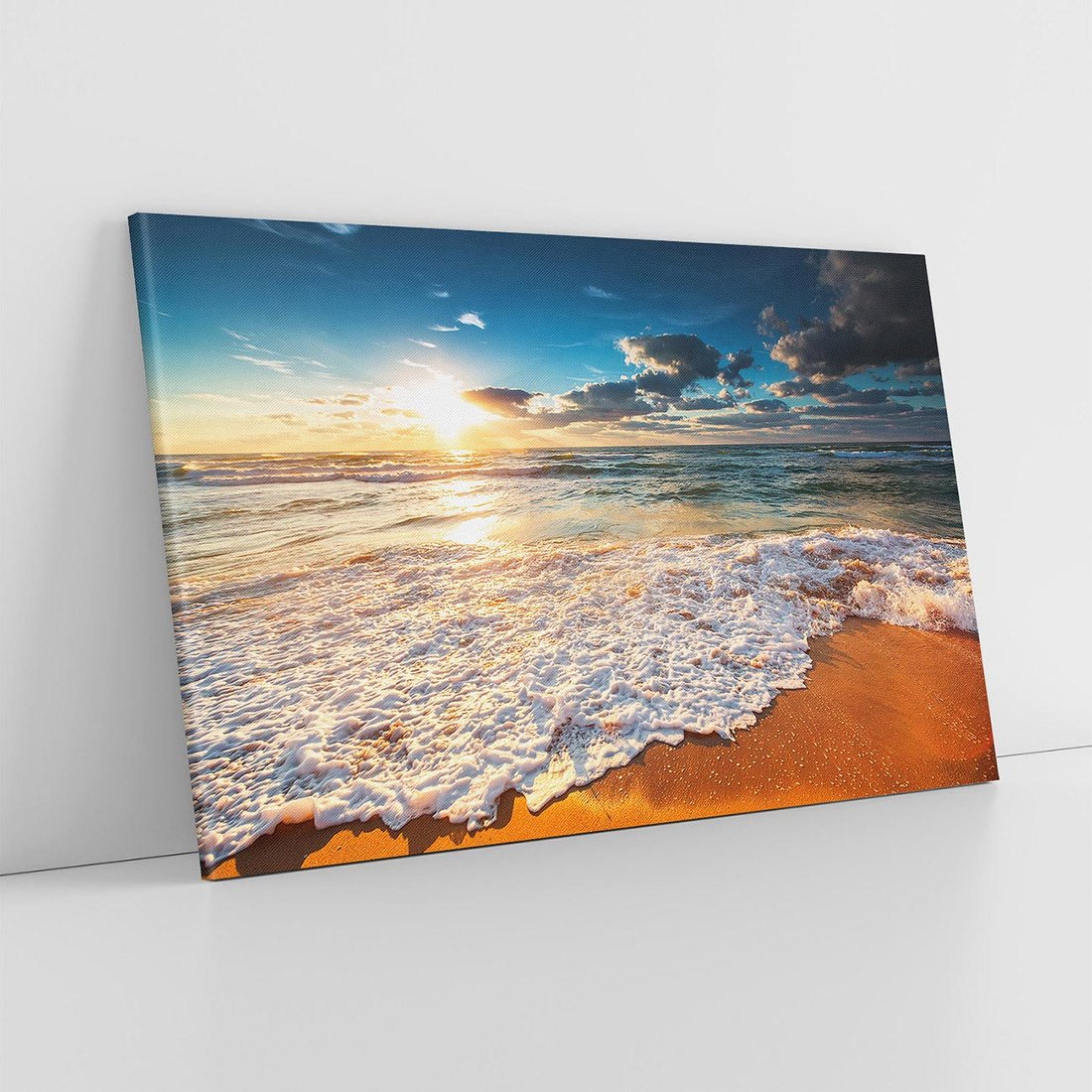 Przenieś się na malowniczą plażę w chwili zachodu słońca dzięki temu uroczemu obrazowi. Kolorowe niebo, złote promienie i kojące dźwięki morza tworzą niezapomniany nastrój. Ta kompozycja dodaje spokoju i romantyzmu, idealna dla miłośników plaż i pragnących wprowadzić letni nastrój do swojego wnętrza.