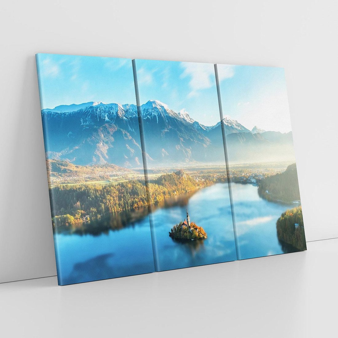 Obraz na płótnie 120x80 - Zamek pośrodku jeziora - jezioro, góry