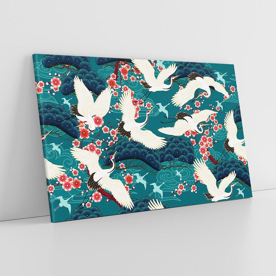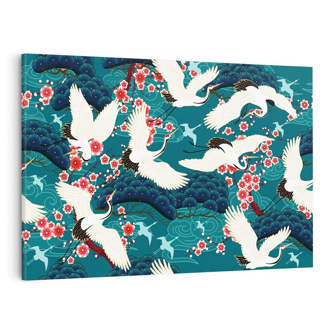 Obraz na płótnie 120x80 - Żurawie Wachlarze - orientalne japońskie żurawie, grafika