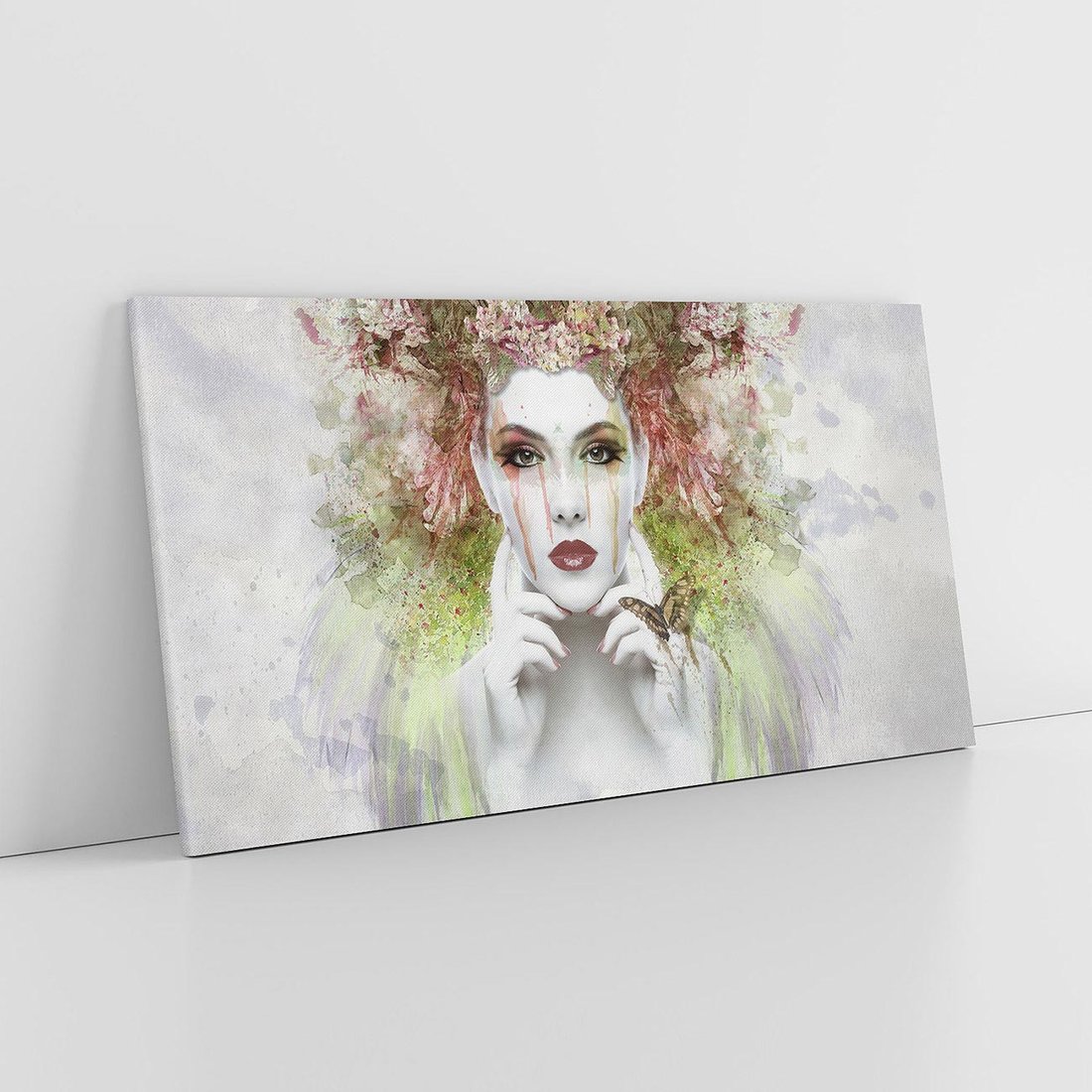 • Obraz na płótnie 140x70 - Abstrakcyjna Ekspresja - Twarz w Kwiatowym Wirze
