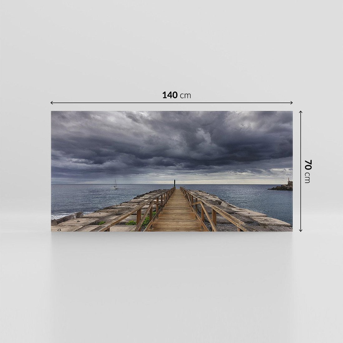 Odczuj potęgę natury dzięki temu emocjonującemu obrazowi przedstawiającemu burzę nad molo. Mroczne chmury, wzburzone fale i intensywna atmosfera tworzą napiętą kompozycję. Ten obraz dodaje dynamiki i emocji, idealny dla miłośników dramatycznych krajobrazów i siły natury.