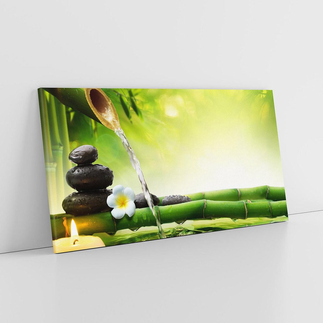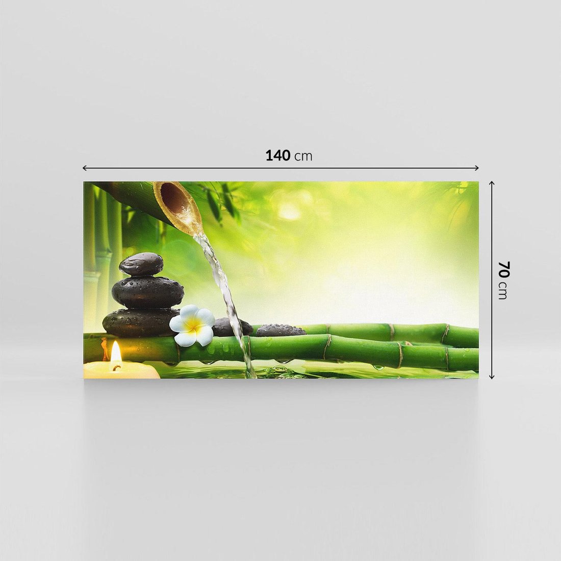Obraz na płótnie 140x70 - Harmonia natury: Bambus, woda, kamienie - bambus, woda