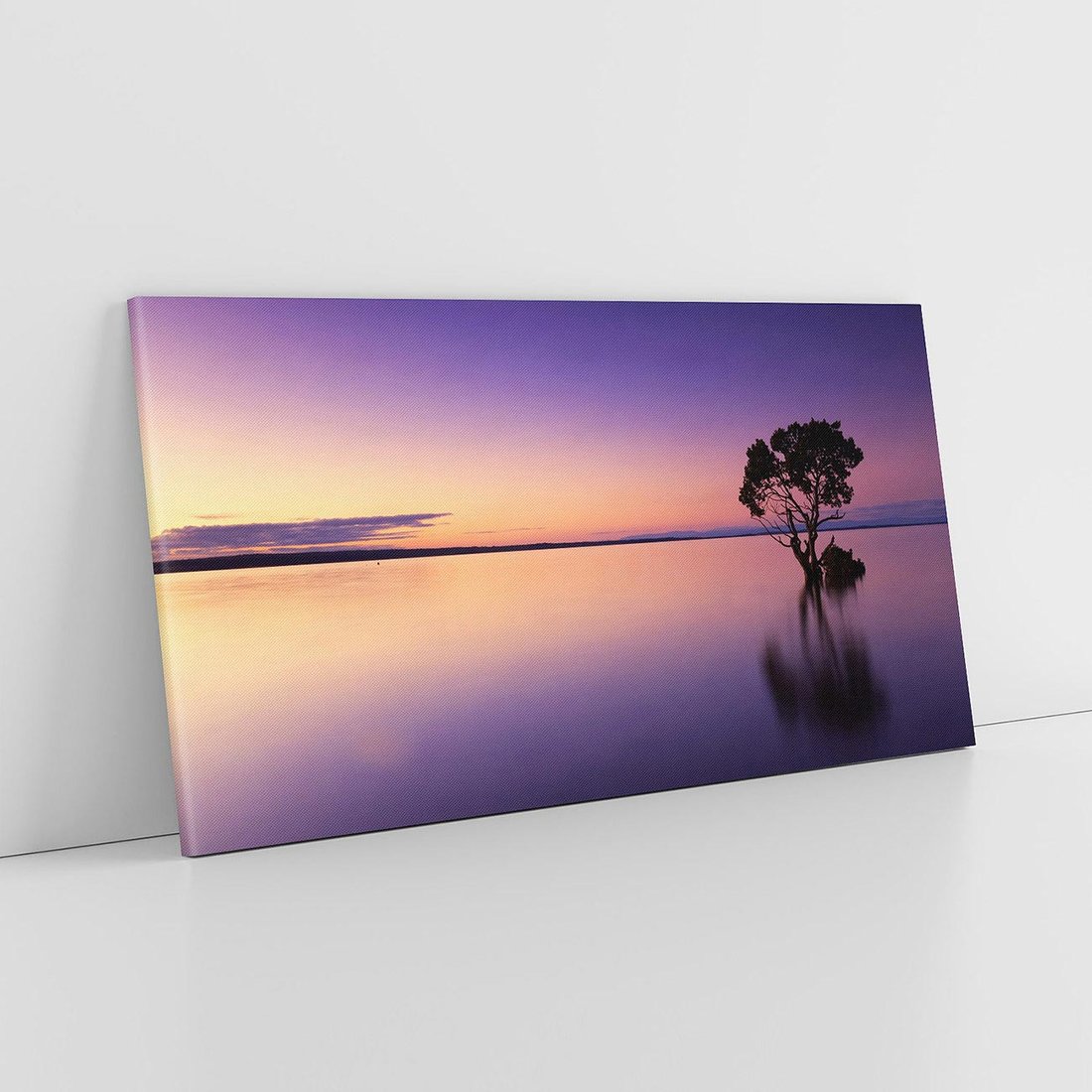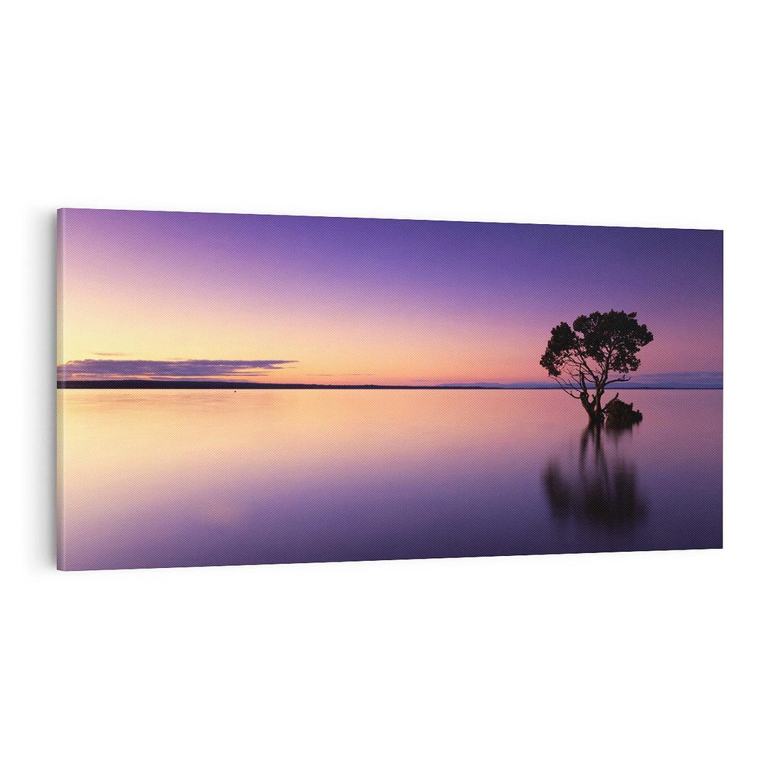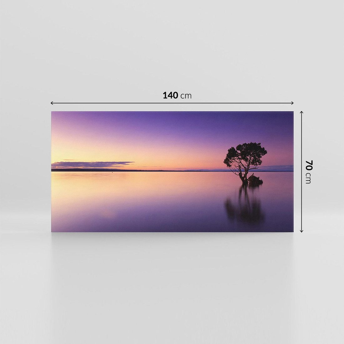 - Obraz na płótnie 140x70 - Jezioro wśród drzew o zachodzie
