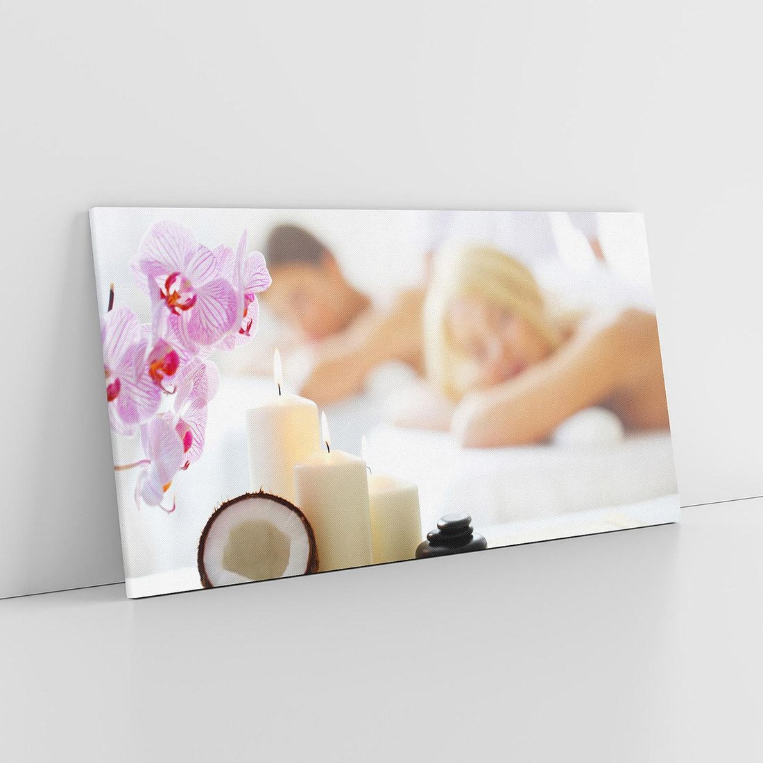- Obraz na płótnie 140x70 - Kokos, świece i kwiaty w SPA