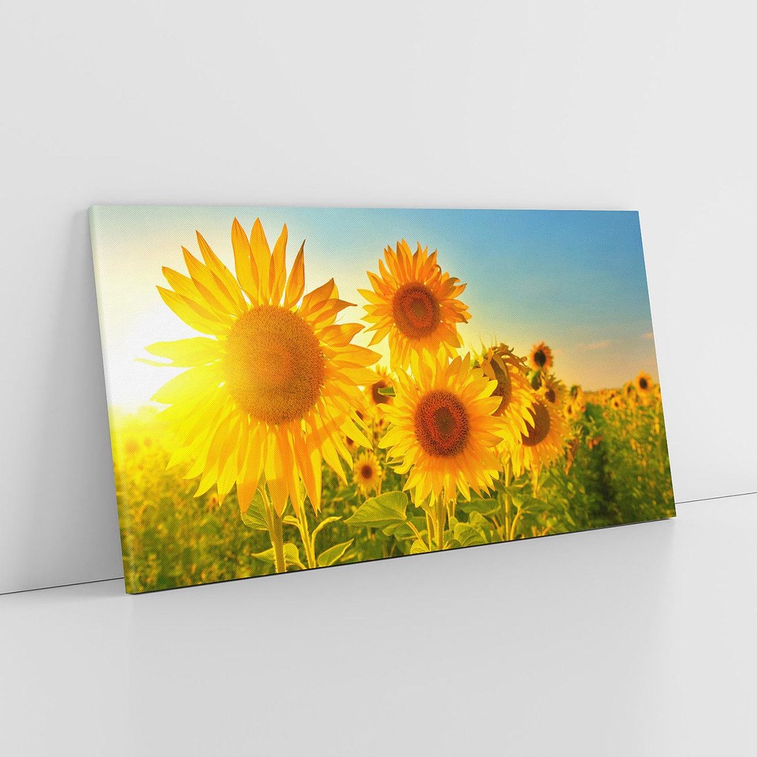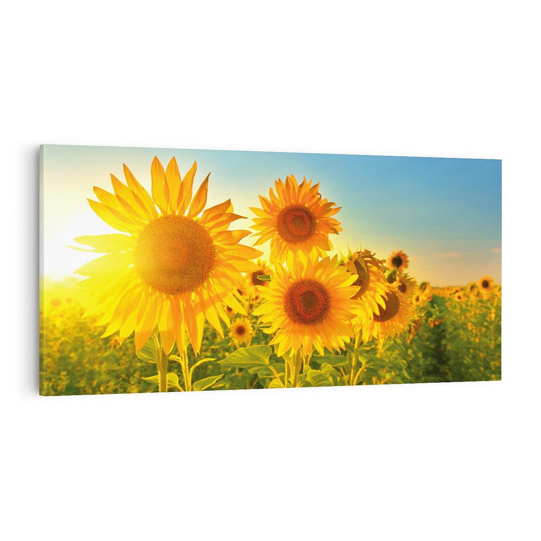 Obraz na płótnie 140x70 - kolorowe promienie - słoneczniki, kwiaty