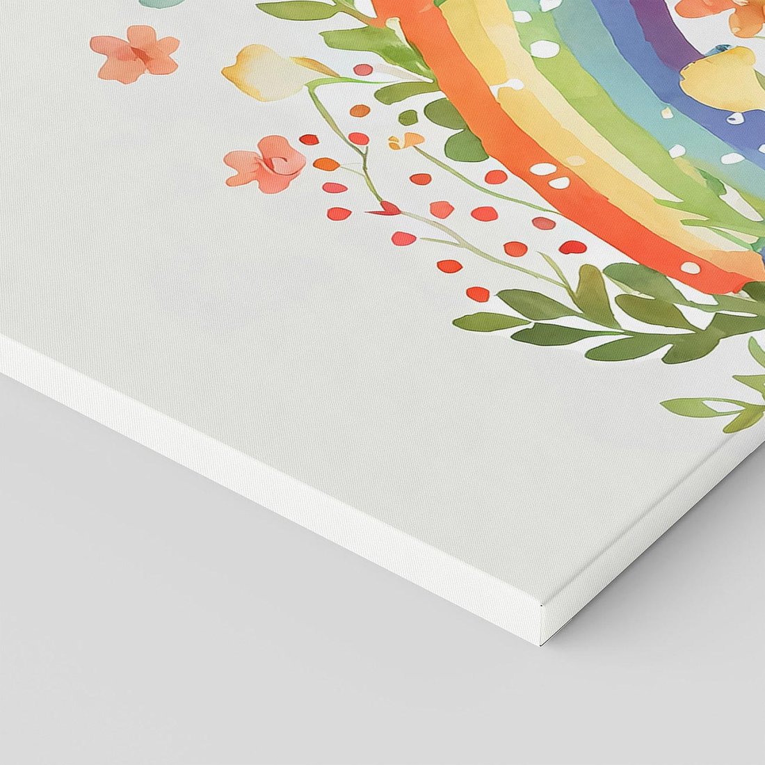To urocze dzieło sztuki stworzone specjalnie dla małych marzycielek. Tęczowa akwarela na obrazie ukazuje wspaniałe kwiaty, malowane z delikatnością i miłością. Odcienie tęczy dodają radości i koloru do pokoju dziecka, tworząc wspaniały klimat kreatywności i beztroski. "Królestwo Marzeń" jest idealnym akcentem w pokoju dziewczynki, inspirując ją do snucia swoich własnych barwnych historii.