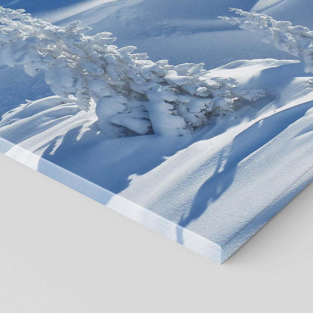 Obraz na płótnie przedstawiający zaspy śniegu w lesie. Ta kompozycja przyniesie do wnętrza urok zimy i magii śnieżnego pejzażu.