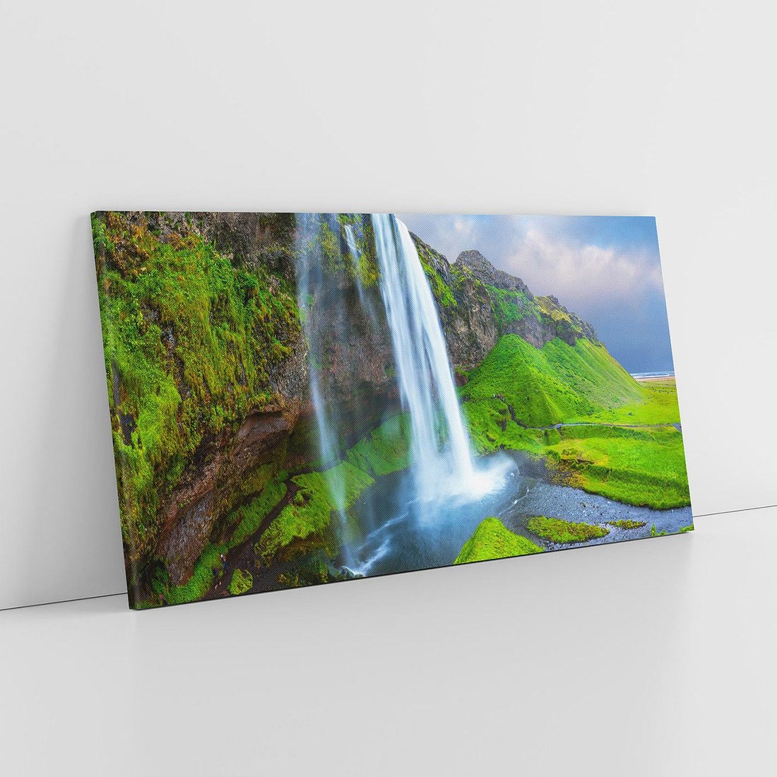 Ożyw swoje wnętrze tym imponującym obrazem przedstawiającym wodospad, góry i skały. Spadająca woda, szmaragdowa roślinność i dynamiczna atmosfera tworzą niesamowitą aurę. Ta kompozycja dodaje siły i energii, idealna dla miłośników przygody i imponujących krajobrazów.