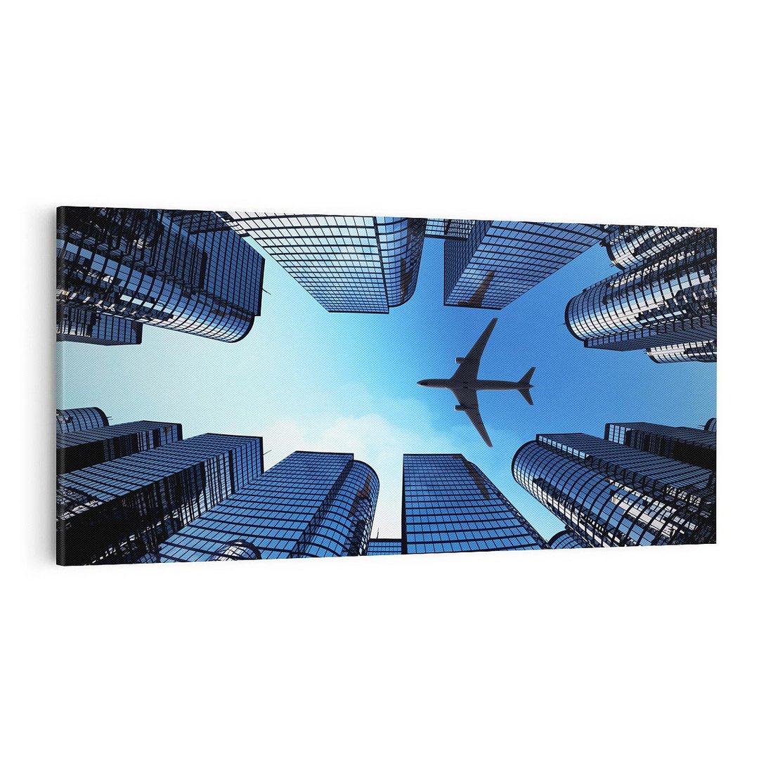 - Obraz na płótnie 140x70 - Miasto o niezwykłym widoku - latające samoloty