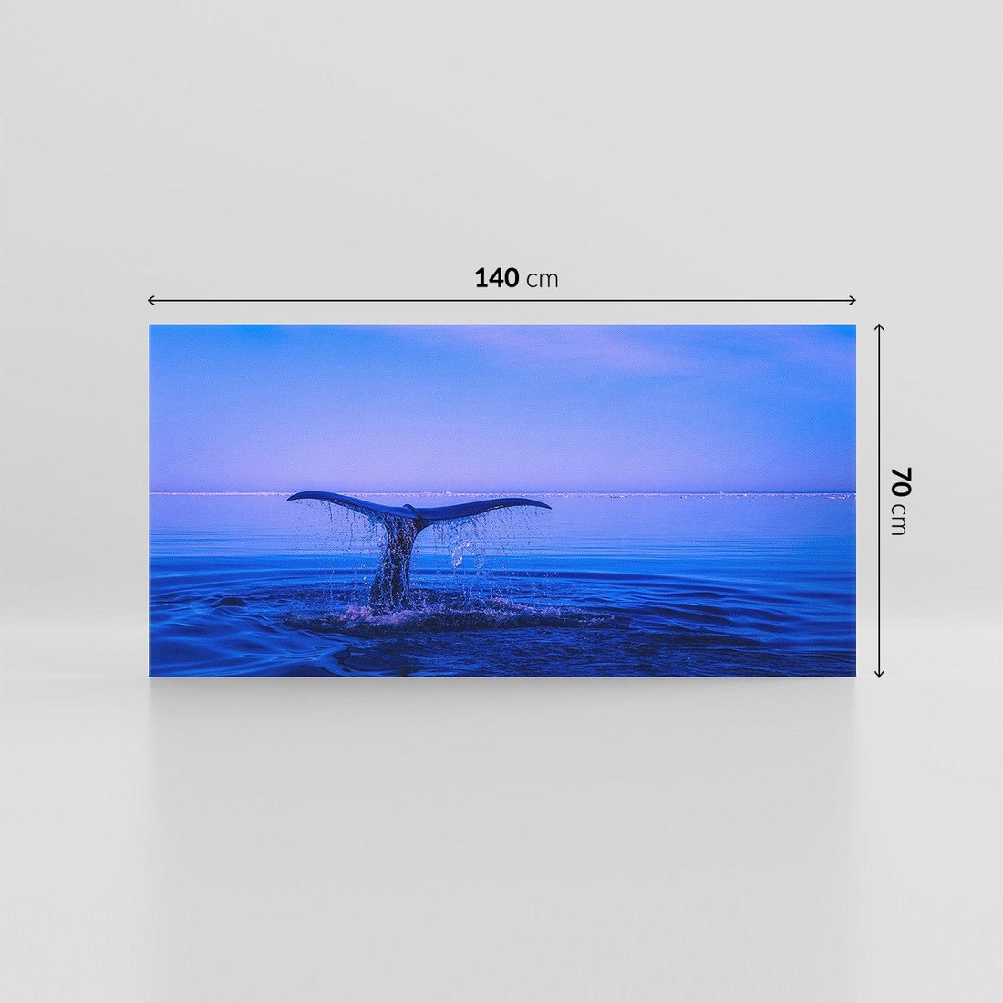Ten malowniczy obraz ukazuje majestatycznego wieloryba unoszącego się nad szerokim oceanem. Przenieś się w świat tajemnic i siły tych wspaniałych morskich stworzeń. Dodaj nutę egzotyki i fascynacji przyrodą swojemu wnętrzu tym wyjątkowym dziełem sztuki.