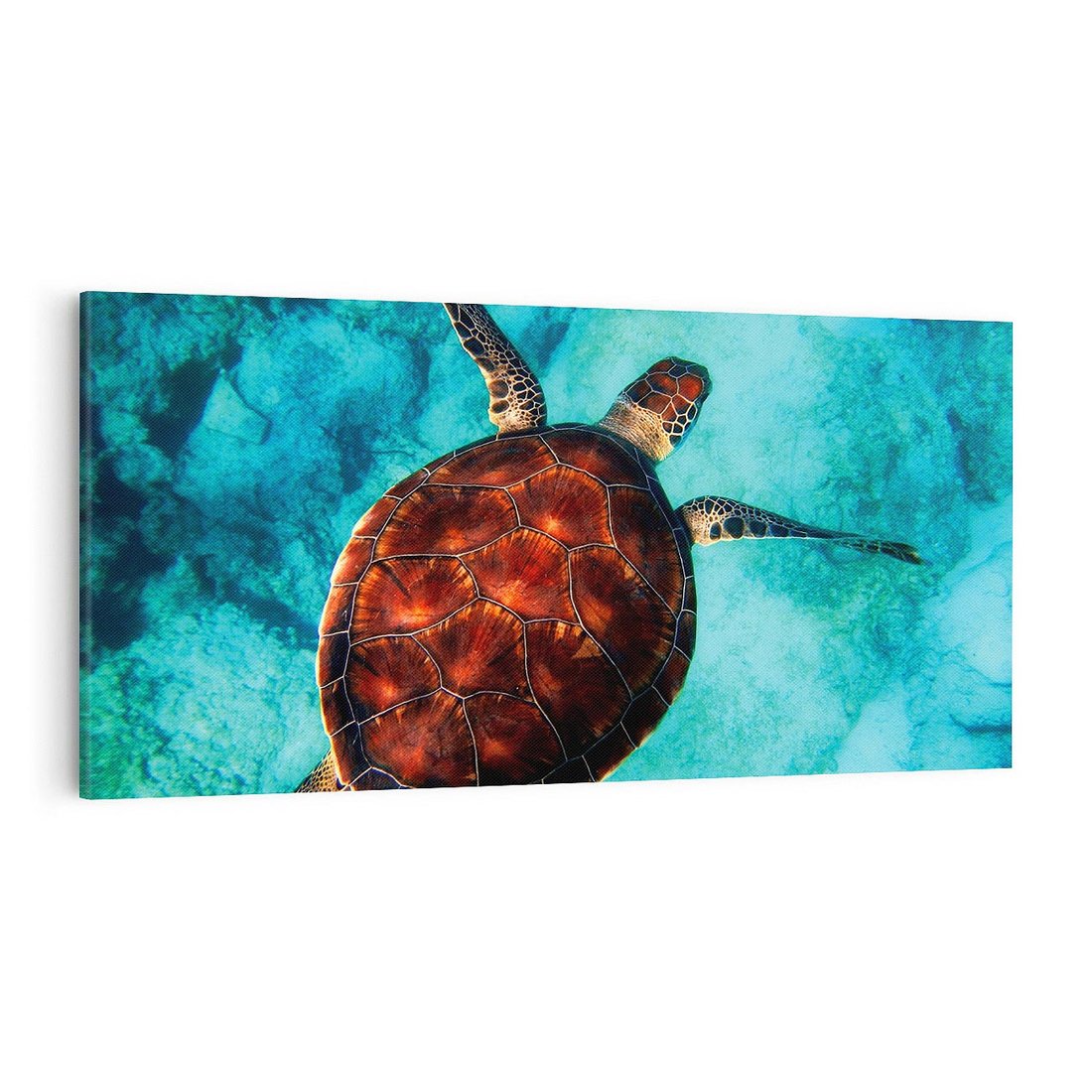 Obraz na płótnie 140x70 - Morze, fale i skały - żółw, morze