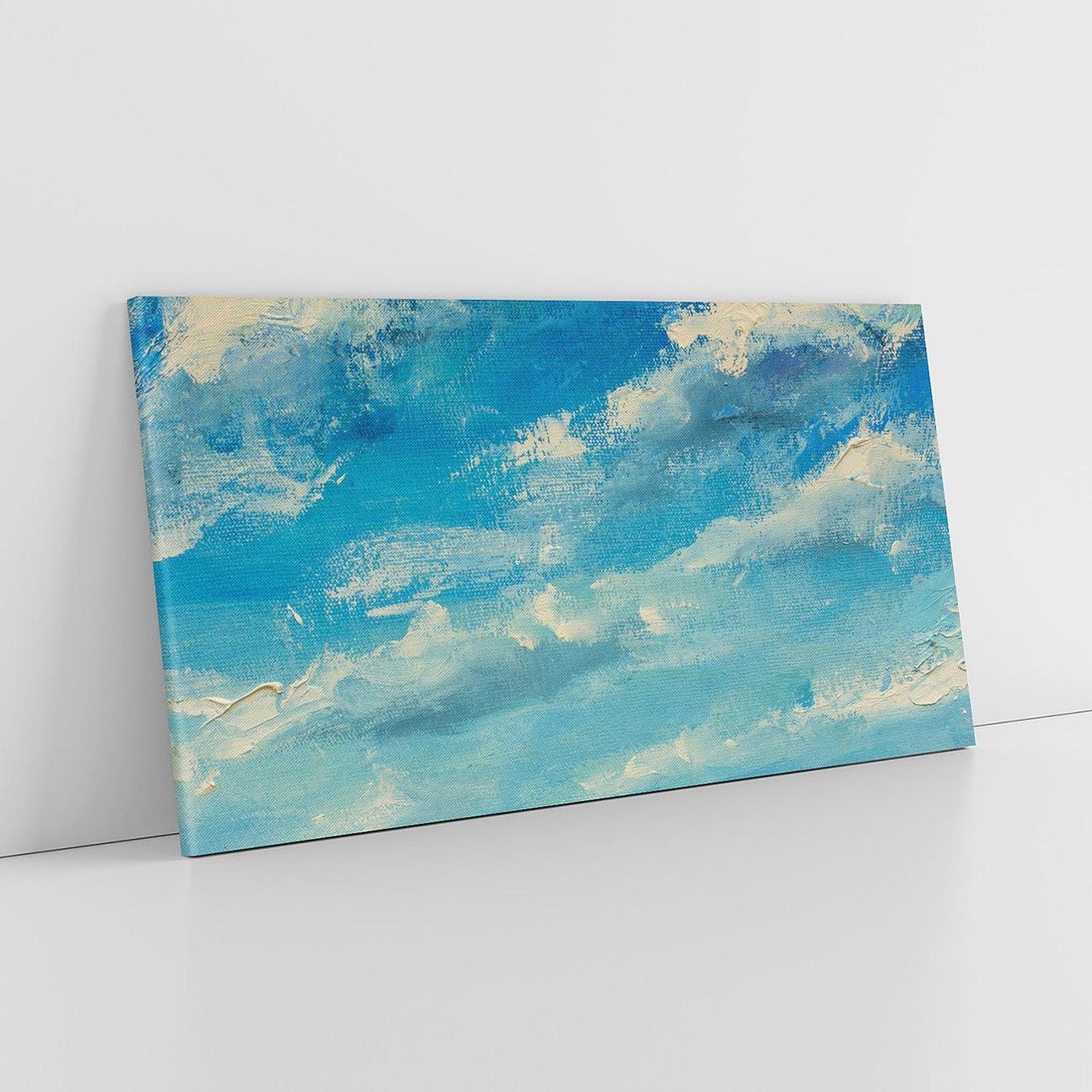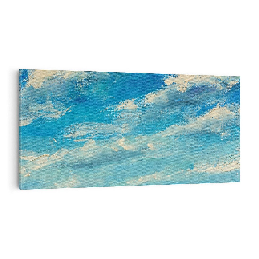 Obraz na płótnie 140x70 - Oddechy niebiańskiej materii - olejny obraz, smugi farby przypominają obłoki na błękitnym niebie