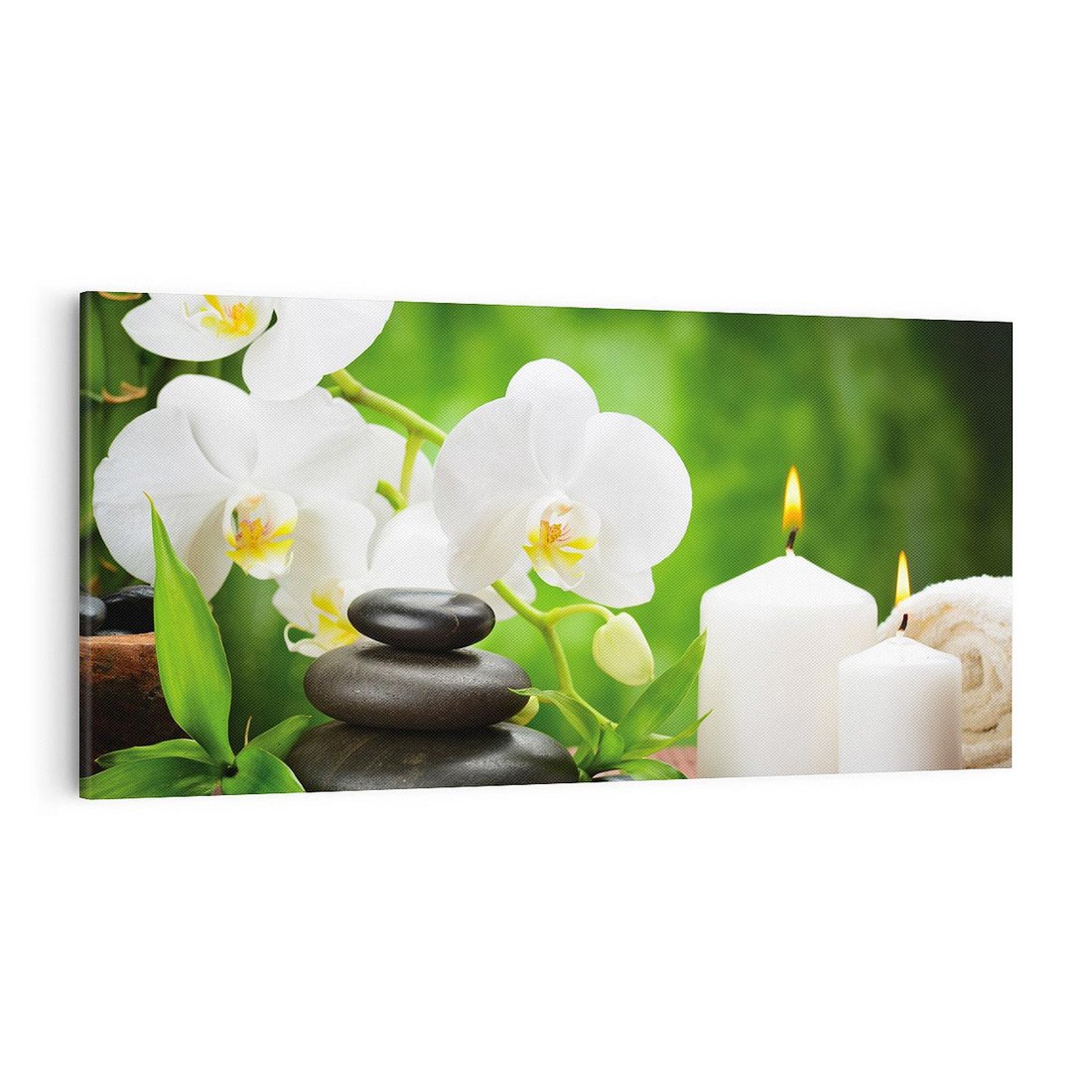 - Obraz na płótnie 140x70 - Relaksacyjny SPA: masaż z kamieniami i kwiatami
