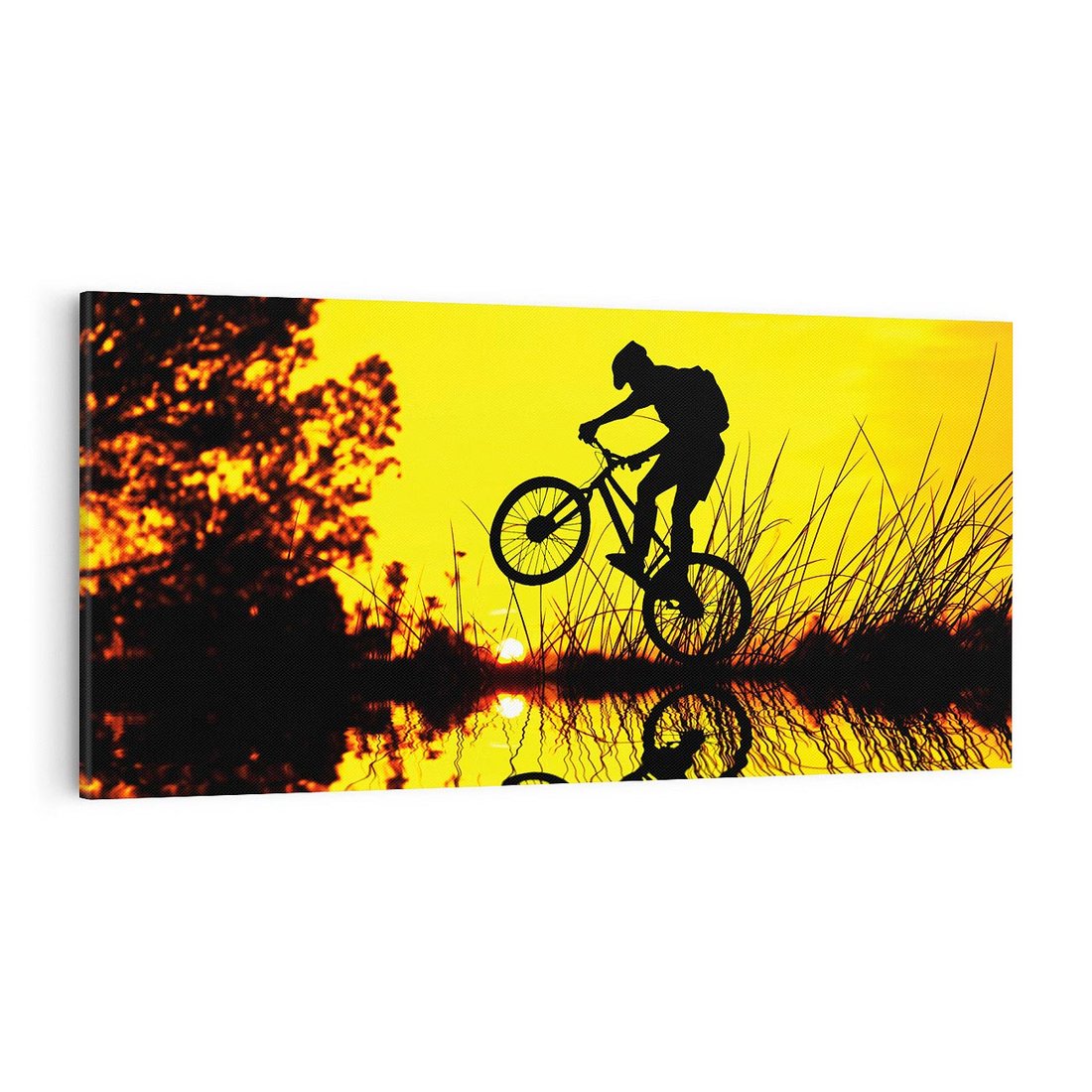 - Obraz na płótnie 140x70 - Rower przy zachodzie słońca
