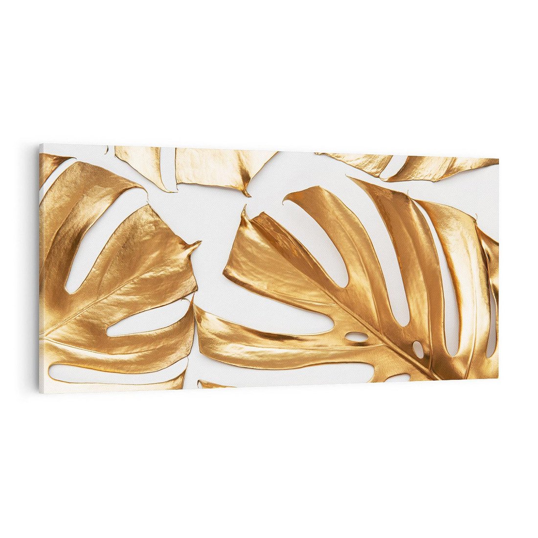 Dodaj ekskluzywności do swojego wnętrza za pomocą obrazu przedstawiającego złote liście monstera. Poczuj magię kontrastu i dodaj subtelności tej wyjątkowej kompozycji.