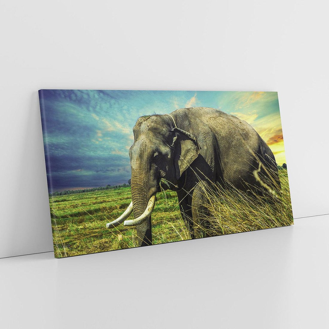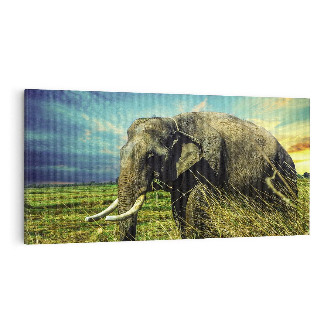 - Obraz na płótnie 140x70 - Słoń w sawannie: Spotkanie z dziką przyrodą