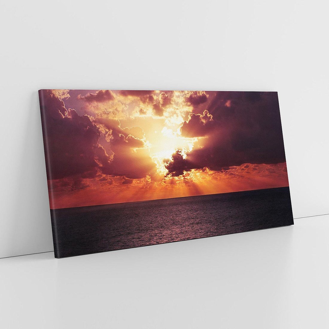 Ten uroczy obraz przeniesie Cię w momenty pięknych zachodów słońca nad morzem, gdzie słońce przebija się przez chmurki. Ciesz się widokiem ich kontrastu i dodaj odrobinę magii natury do swojego wnętrza tym wyjątkowym obrazem.