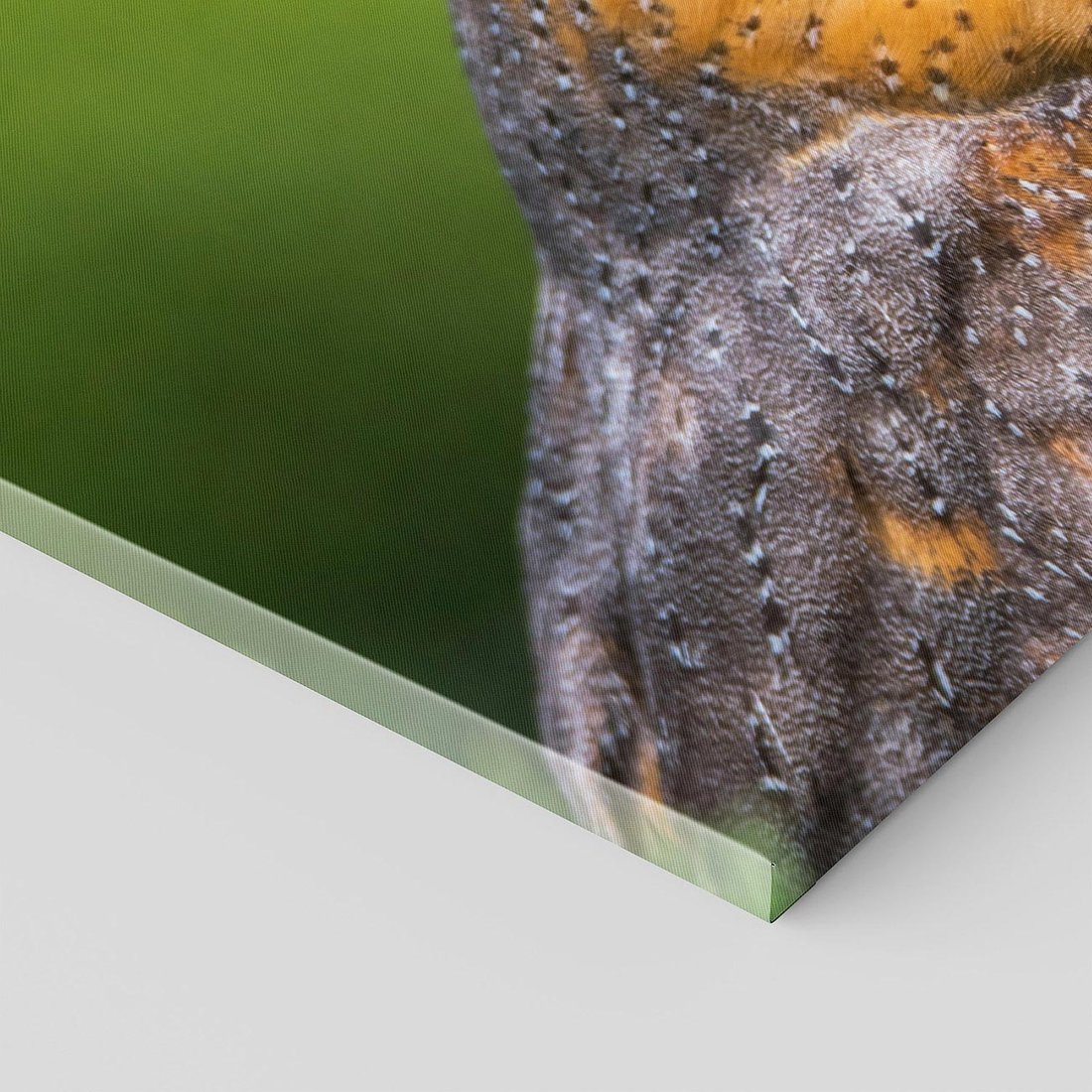 Ta wspaniała sowa ukazana na obrazie siedzi spokojnie w gęstym liściastym zagajniku. Jej skupione spojrzenie i subtelna gra świateł i cieni tworzą niesamowity efekt trójwymiarowego obrazu. To dzieło sztuki przyciąga uwagę i wywołuje uczucie spokoju, idealne jako punkt centralny w eleganckim wnętrzu.