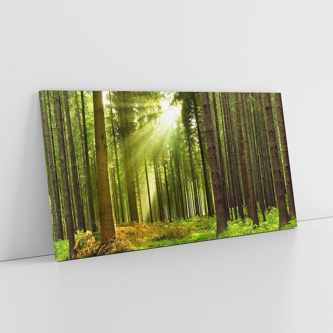 - Obraz na płótnie 140x70 - Spokój wśród drzew: las w odcieniach zieleni