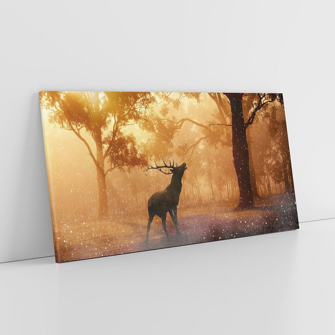 - Obraz na płótnie 140x70 - Spotkanie jelena w lesie