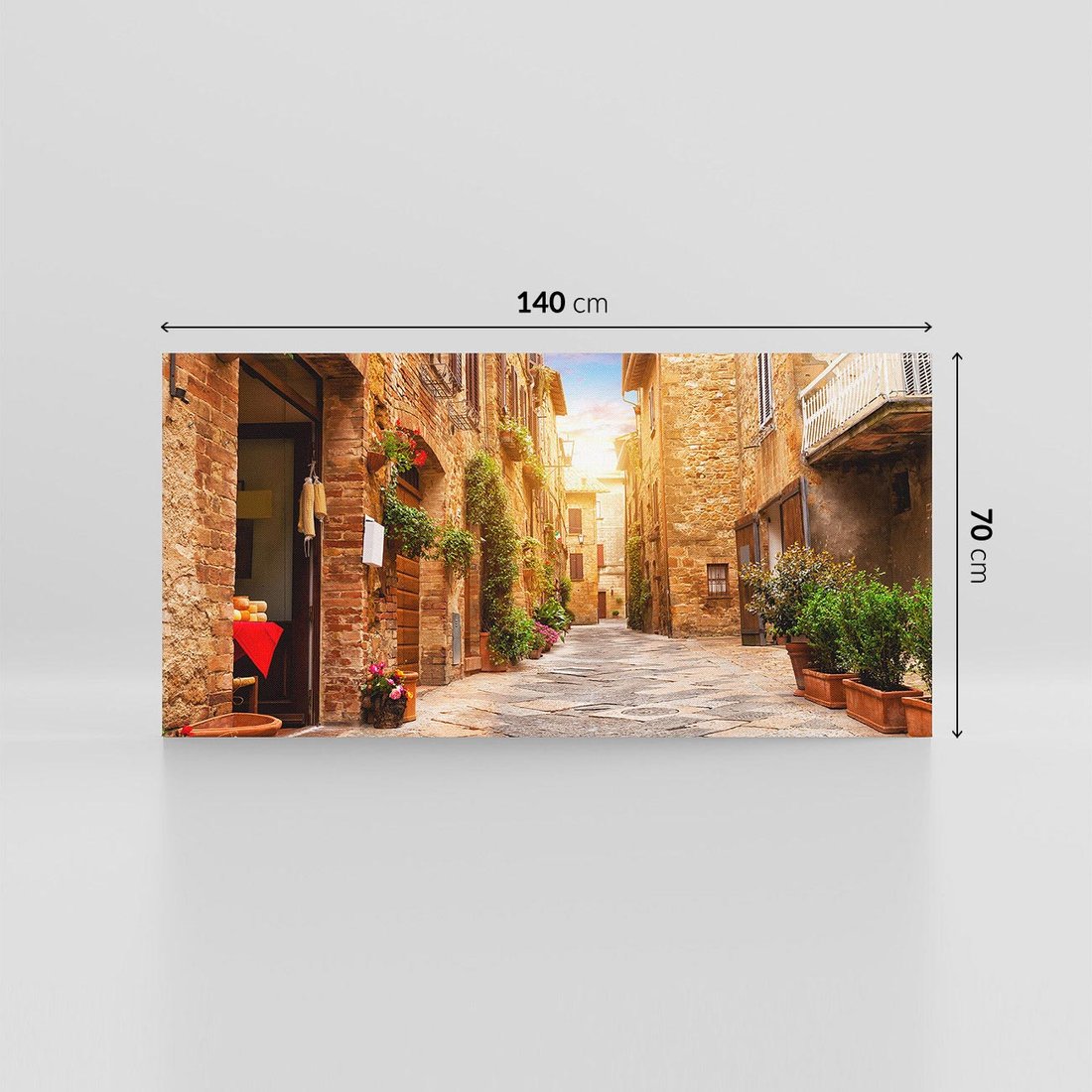• Obraz na płótnie 140x70 - Urok uliczki miejskiej z kwiatami