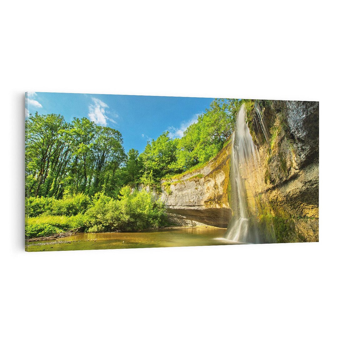 Obraz na płótnie 140x70 - Wodospad: Skały w ruchu - wodospad, las
