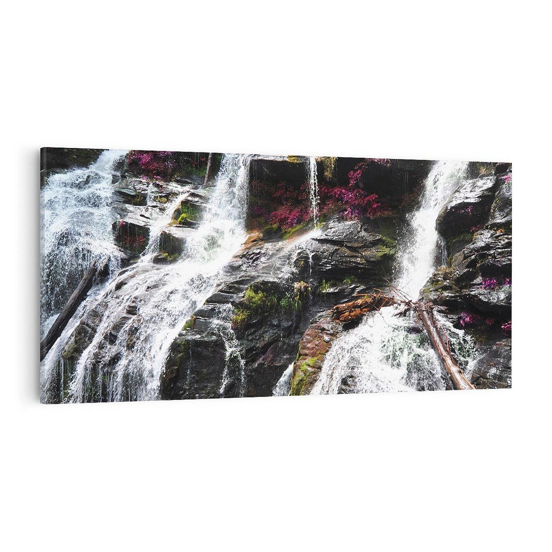 - Obraz na płótnie 140x70 - Wodospad wśród majestatycznych gór
