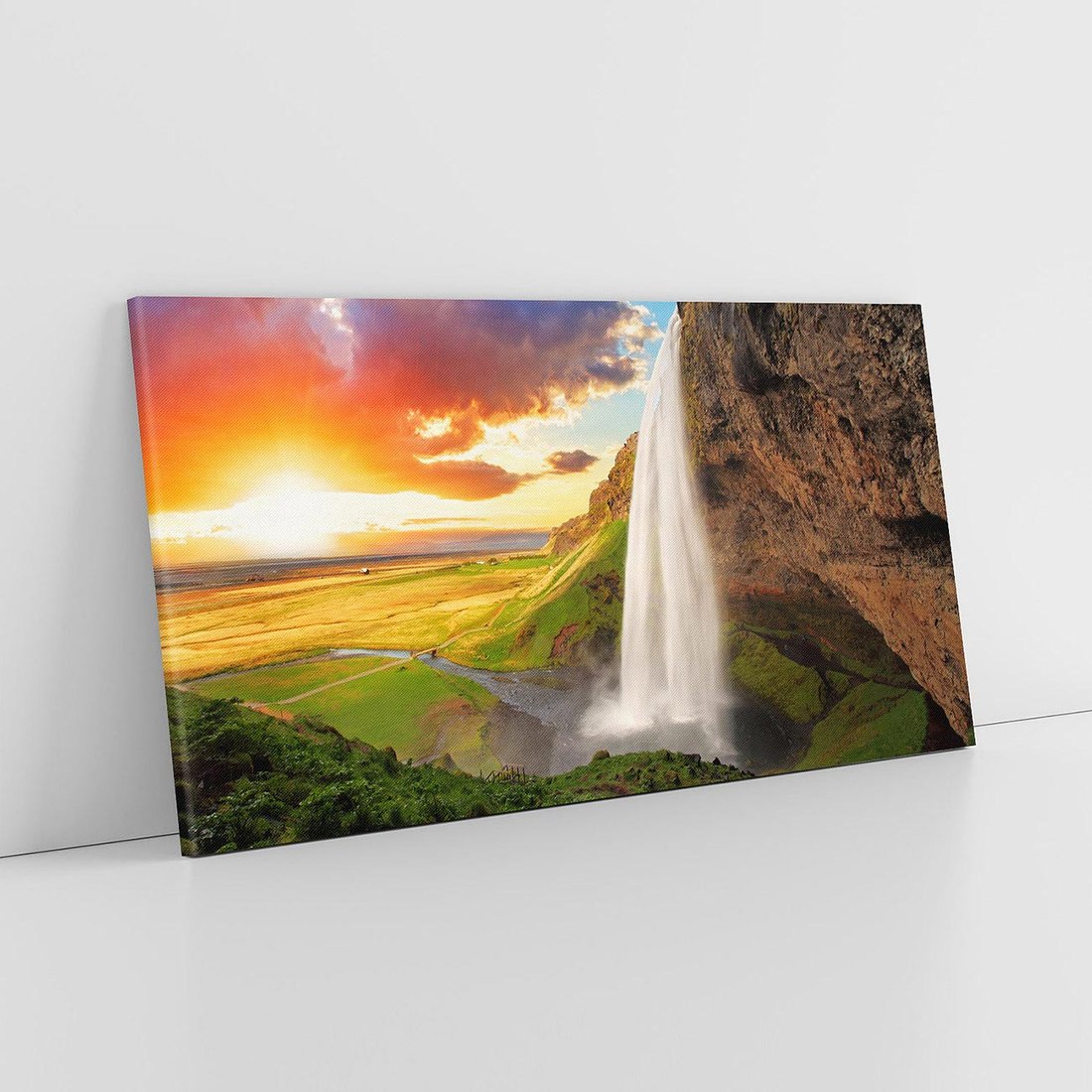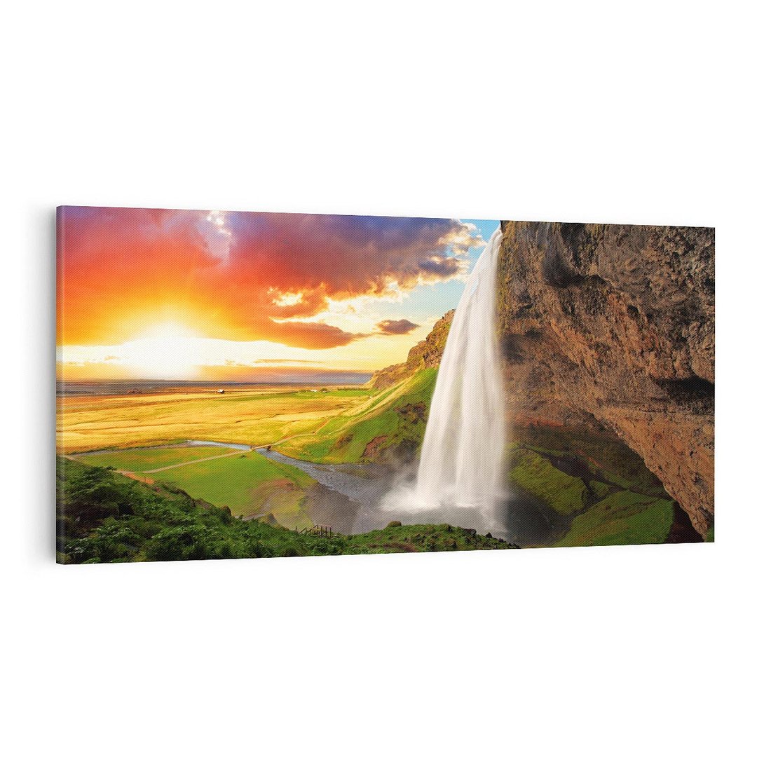 Obraz na płótnie 140x70 - Zachód słońca nad islandzkim wodospadem - Islandia, wodospad