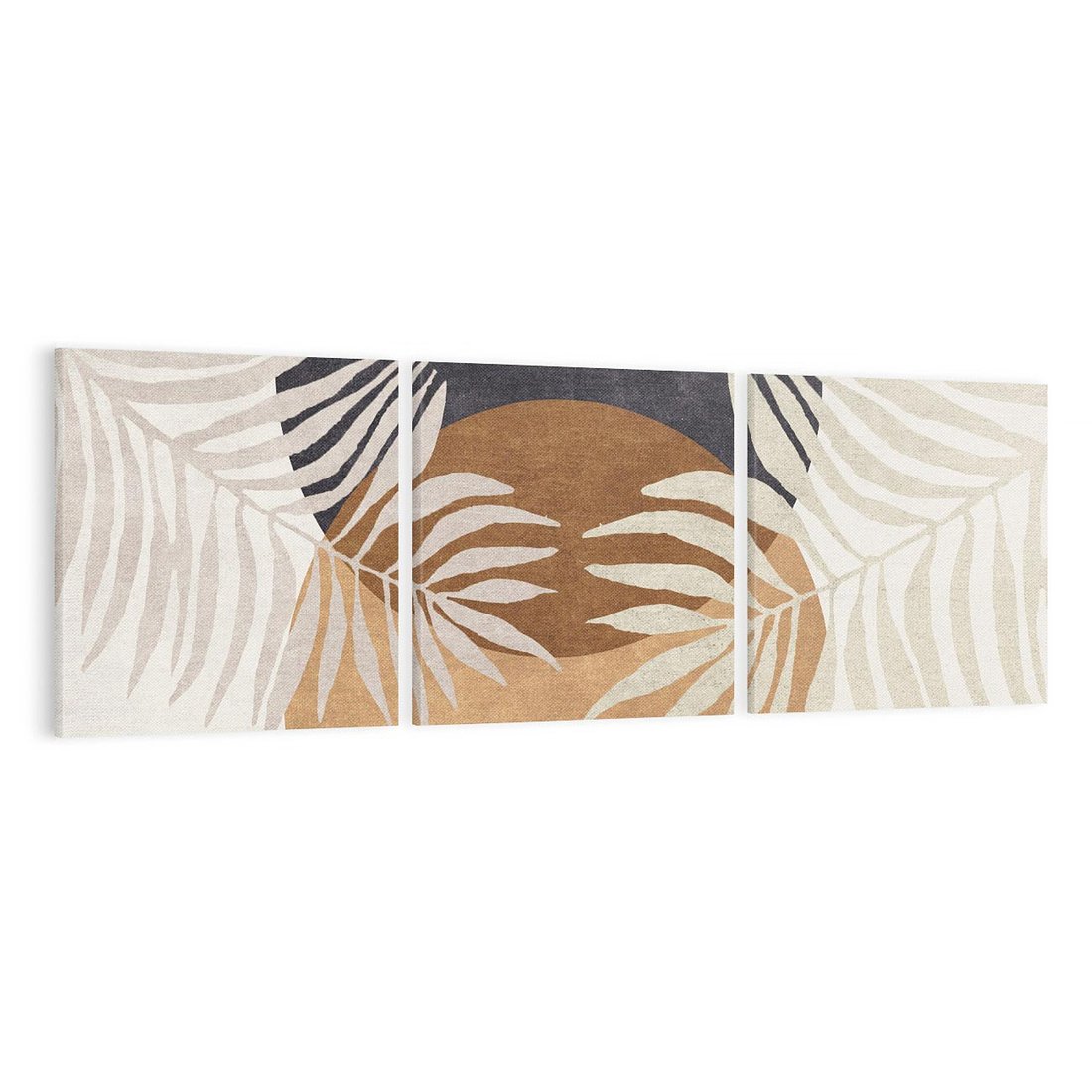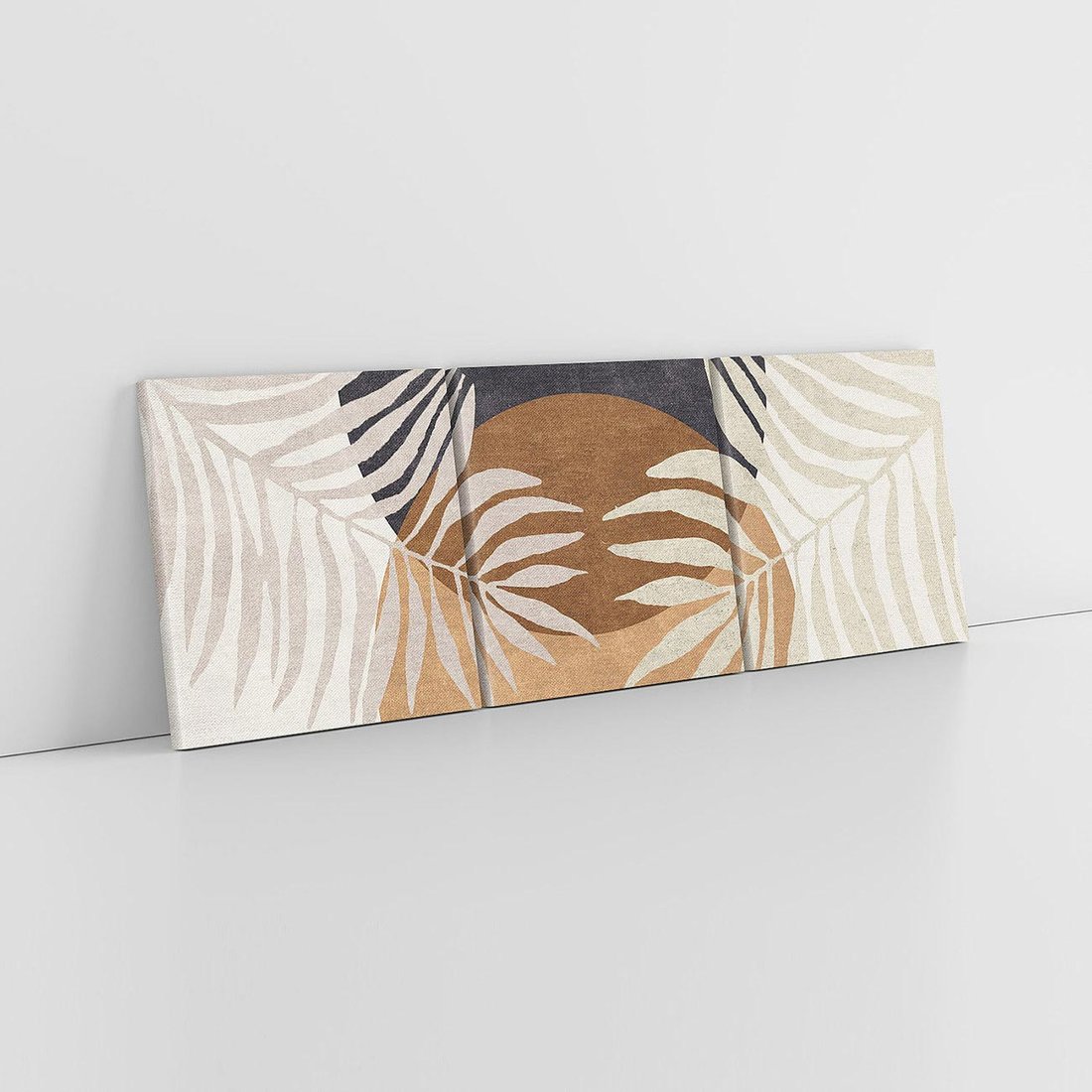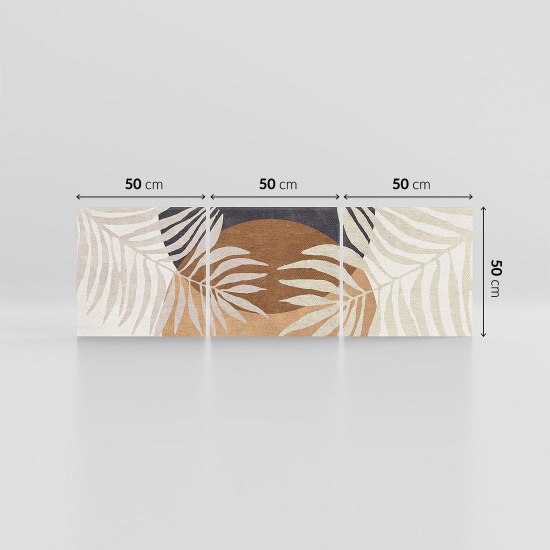 Odkryj wyjątkowy obraz w stylu boho, gdzie symetria i dwa duże koła po środku przyciągają uwagę. Brąz i czerń tworzą elegancką paletę barw. Po bokach umieszczone są delikatne liście palmy, dodające tropikalnego uroku. To dzieło sztuki stworzone dla miłośników stylu boho, którzy pragną wnieść artystyczną duszę do swoich wnętrz.