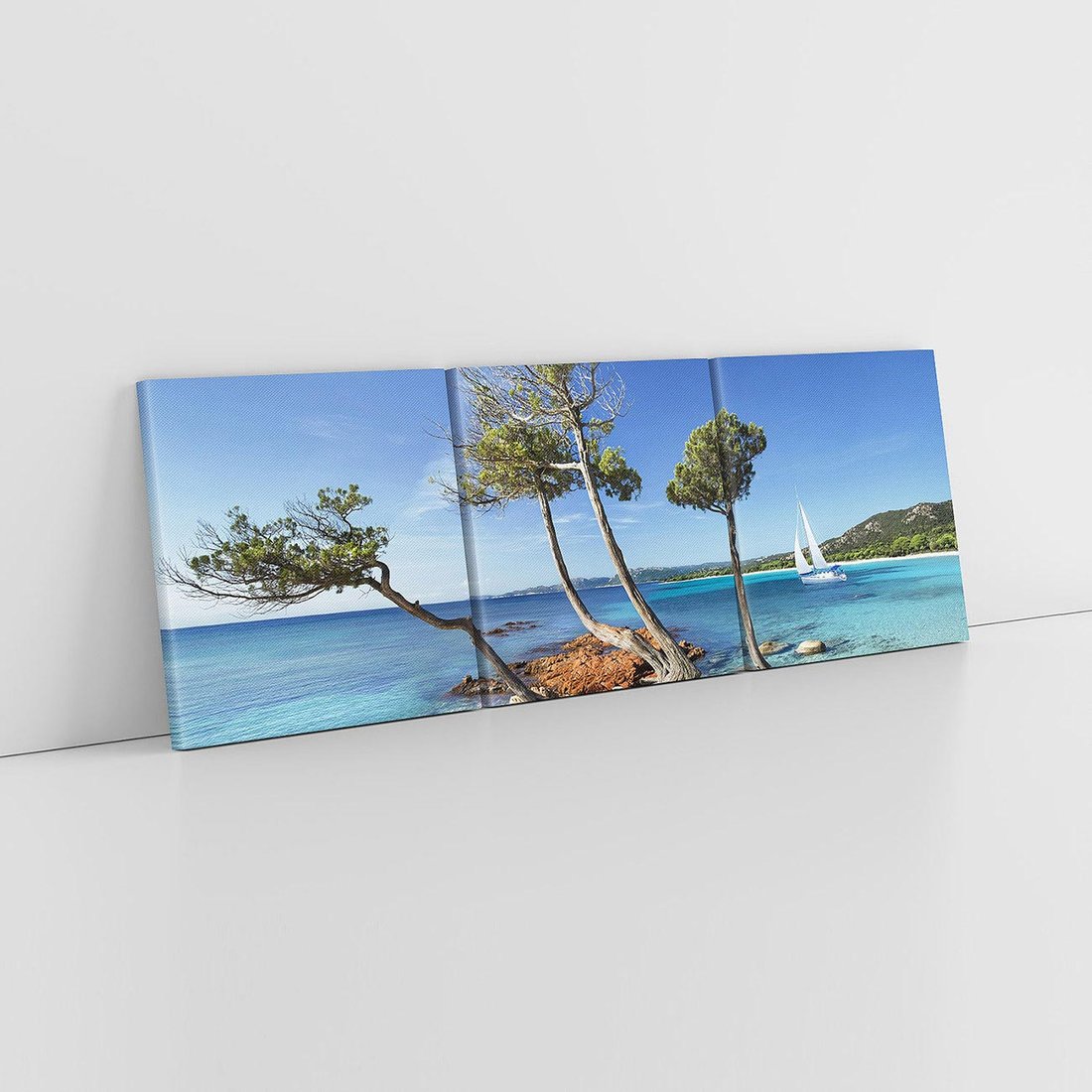 Ten ujmujący obraz na płótnie przeniesie Cię na Korsykę, gdzie morze spotyka się z bujnymi drzewami. Jego błękitne odcienie, zielenie i śródziemnomorski urok dodadzą atmosfery relaksu i siły natury do Twojego wnętrza.