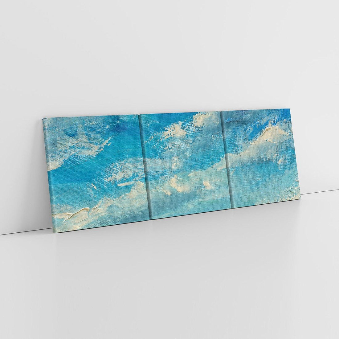 Obraz na płótnie 150x50 - Oddechy niebiańskiej materii - olejny obraz, smugi farby przypominają obłoki na błękitnym niebie