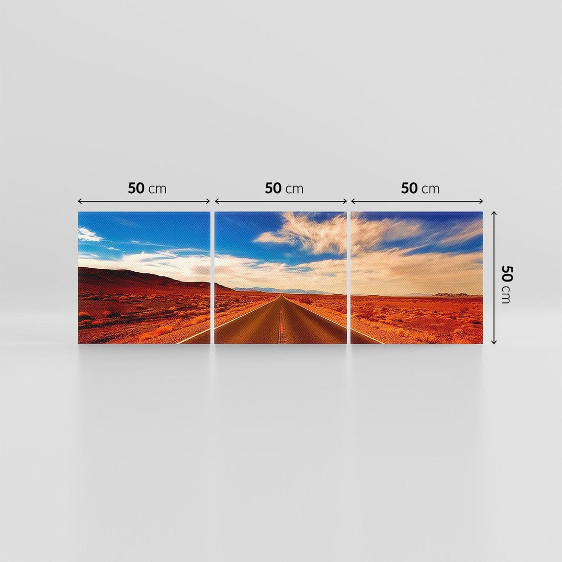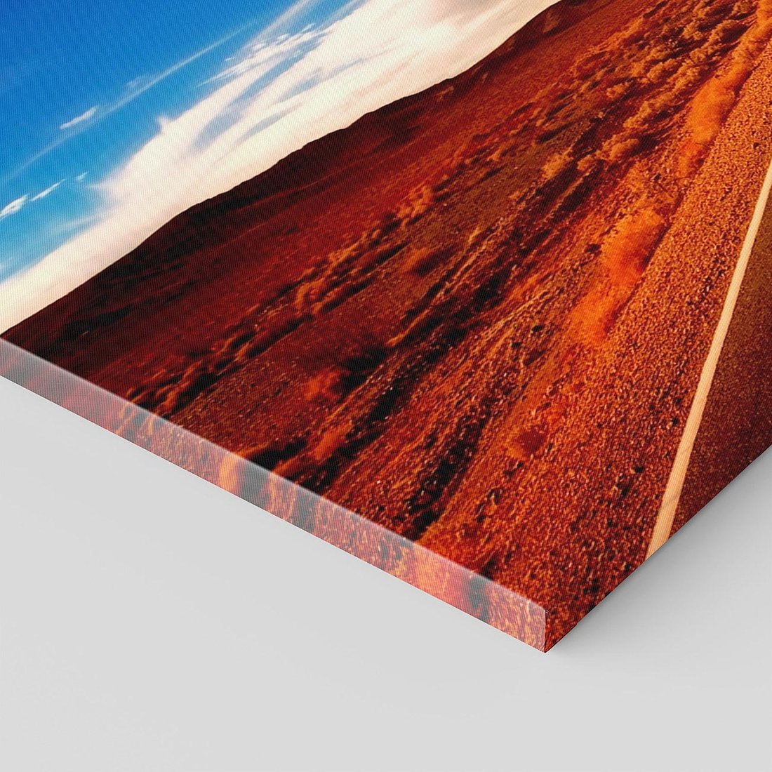 Obraz na płótnie przedstawiający malowniczą drogę prowadzącą przez pustynię. Ta dynamiczna kompozycja przyniesie do wnętrza energię i pasję podróży.