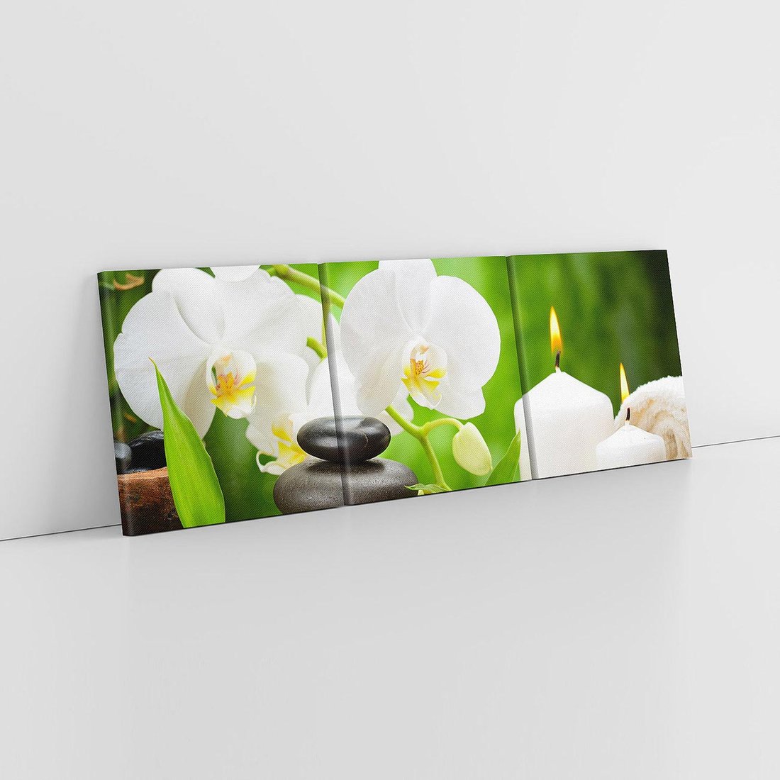 - Obraz na płótnie 150x50 - Relaksacyjny SPA: masaż z kamieniami i kwiatami