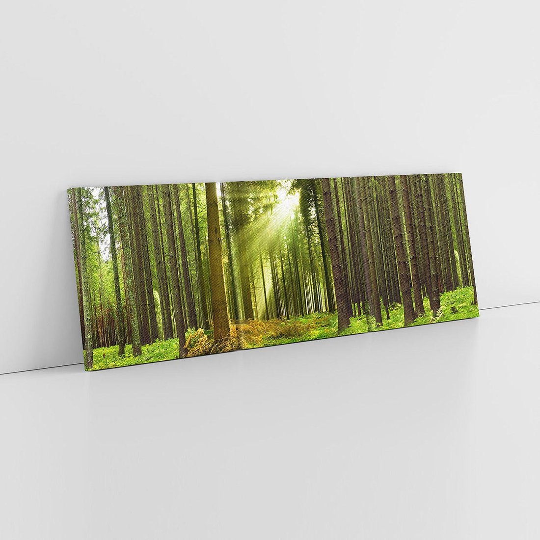 - Obraz na płótnie 150x50 - Spokój wśród drzew: las w odcieniach zieleni