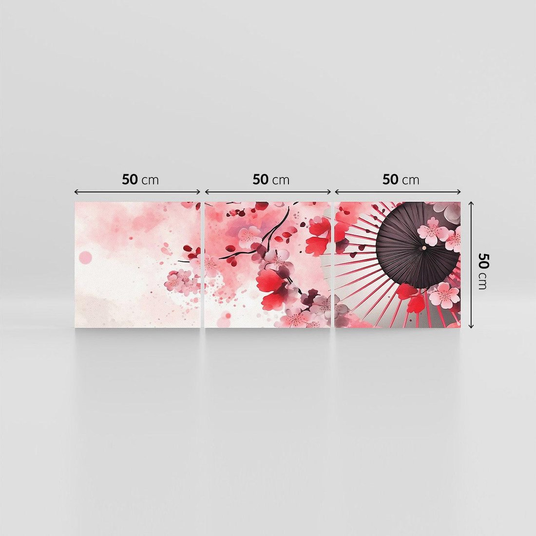 Przenieś swoje zmysły w rejony Dalekiego Wschodu dzięki temu nastrojnemu obrazowi, gdzie zmysłowy japoński parasol oplatają liście i kwiaty sakury. To sztuka, która emanuje subtelnym wdziękiem, przypominając, jak piękno natury jest odzwierciedleniem piękna naszego wnętrza.