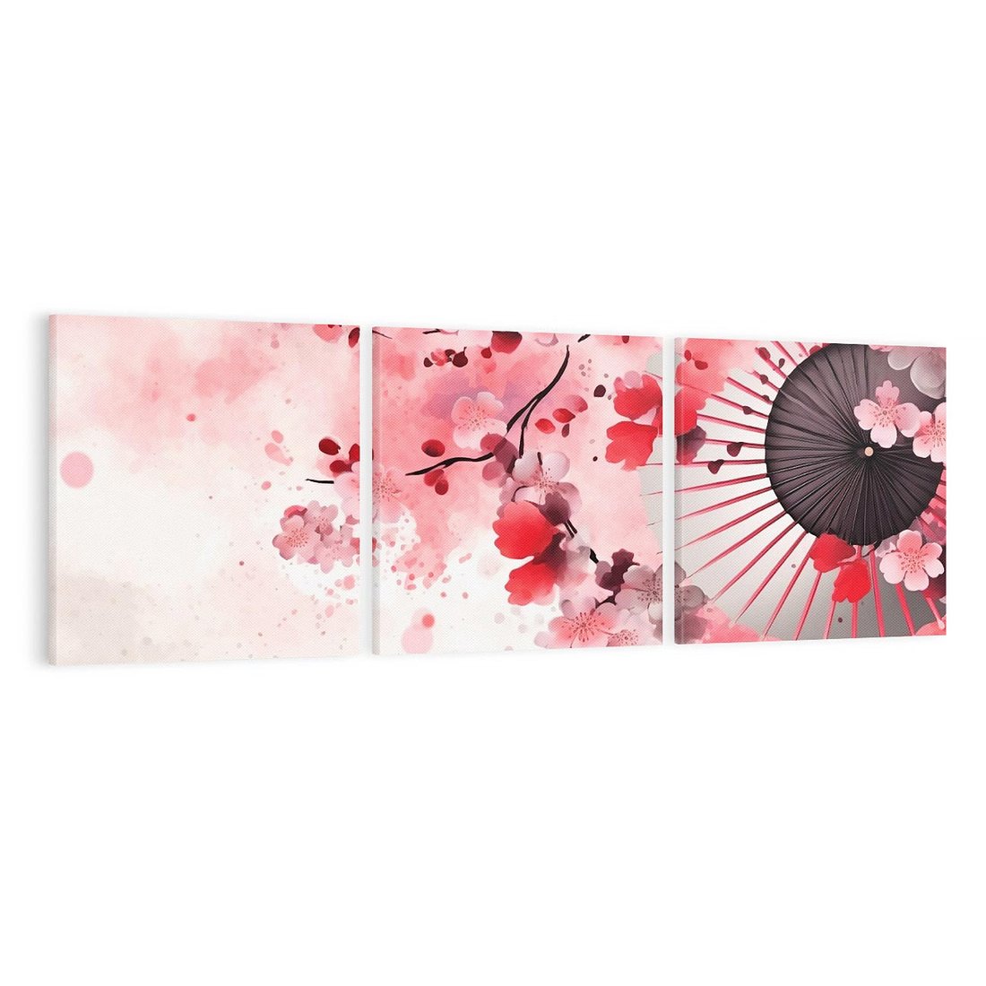 Obraz na płótnie 150x50 - Szept Kwitnącej Wiśni - japoński parasol, liście