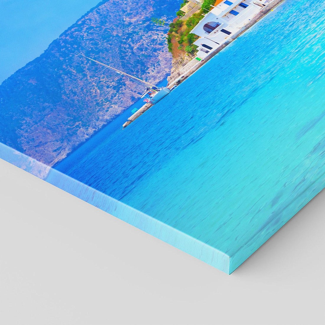 Przenieś się do malowniczej Grecji dzięki temu uroczemu obrazowi przedstawiającemu wyspy otoczone lazurowym morzem. Białe domy, niebieskie dachy i romantyczna atmosfera tworzą sielankową aurę. Ta kompozycja dodaje wakacyjnego charakteru i relaksujących wrażeń, idealna dla osób pragnących poczuć magię greckiego archipelagu w swoim wnętrzu.