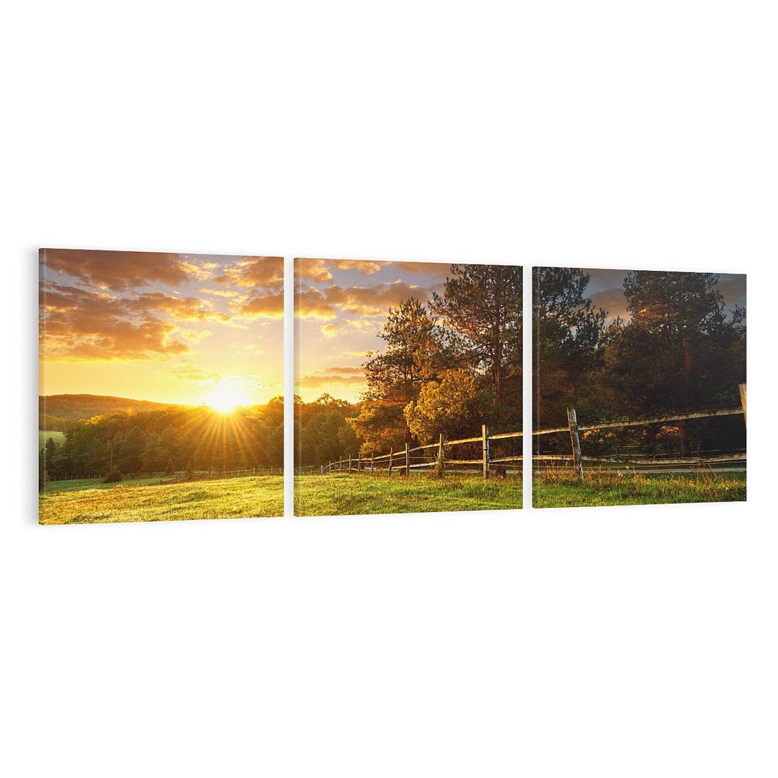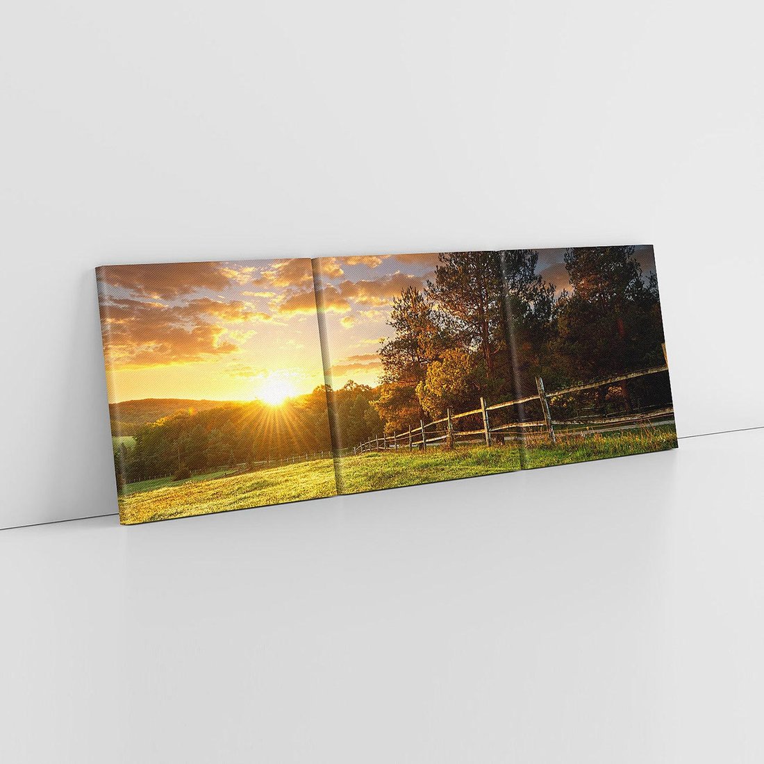 Obraz na płótnie 150x50 - Urok zachodu słońca na łące z drzewami - łąka, zachód