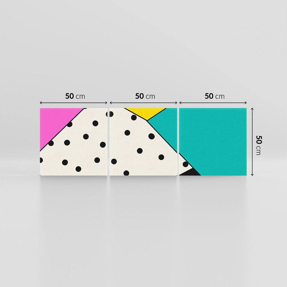 To abstrakcyjne dzieło sztuki przynosi radość w młodzieżowym stylu. Geometryczne kształty i kolorowe kropki tworzą energiczną kompozycję, która cieszy oko i dodaje wyrazistości do wnętrza. Żywe kolory przyciągają uwagę, a nowoczesna abstrakcja dodaje oryginalności i wesołego nastroju. Idealny dodatek do młodzieżowego pokoju.