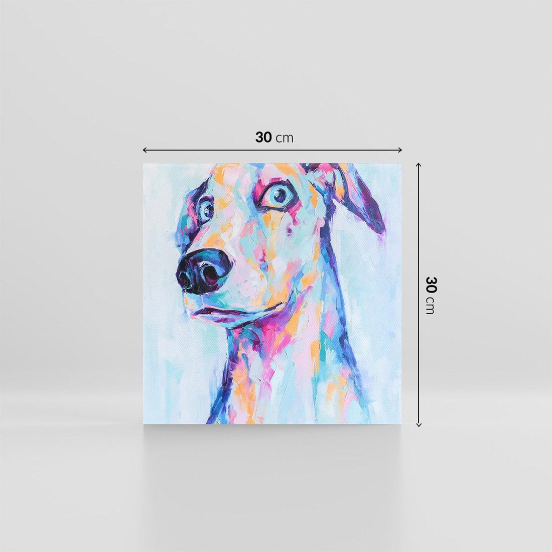 Ten olejny obraz to nie tylko portret psa, ale także zabawna i nowoczesna sztuka, która wykorzystuje pastelowe kolory, aby przekazać radość i humor. W centrum obrazu znajduje się portret uroczego psa. Pastelowe kolory nadają obrazowi lekkości i przyjemności. To dzieło sztuki doskonale pasuje do wnętrz, gdzie doceniane są zarówno nowoczesność, jak i poczucie humoru, a także jest znakomitą dekoracją dla miłośników psów.