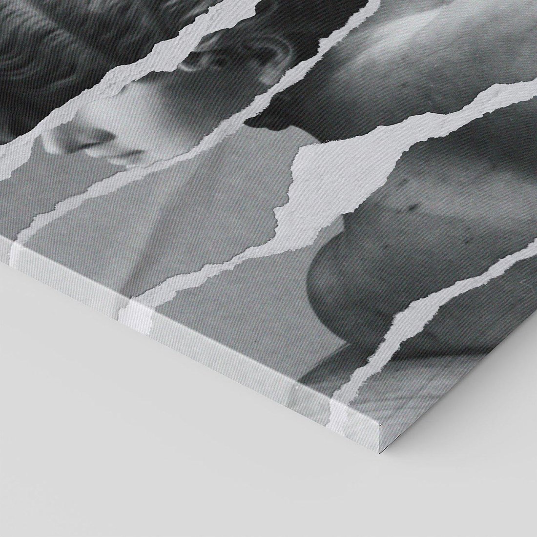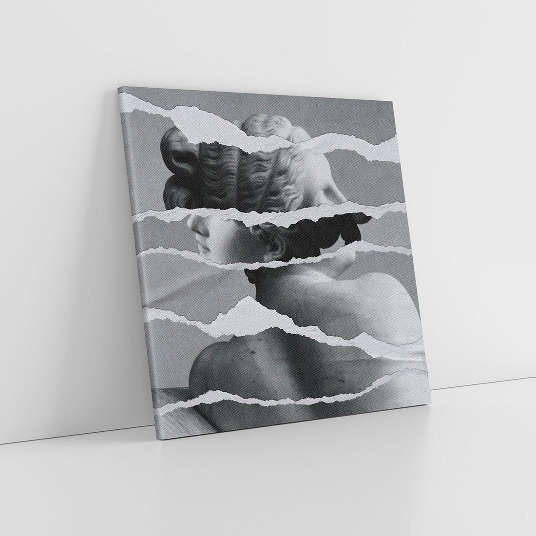 Ten unikalny obraz na płótnie łączy nowoczesność ze sztuką antyczną. Kolaż ze zdjęcia antycznej rzeźby tworzy wyjątkową i abstrakcyjną kompozycję, gdzie odcienie szarości dominują. To dzieło sztuki emanuje harmonią kontrastu między przeszłością a teraźniejszością, nadając Twojemu wnętrzu elegancki i nowoczesny wygląd.