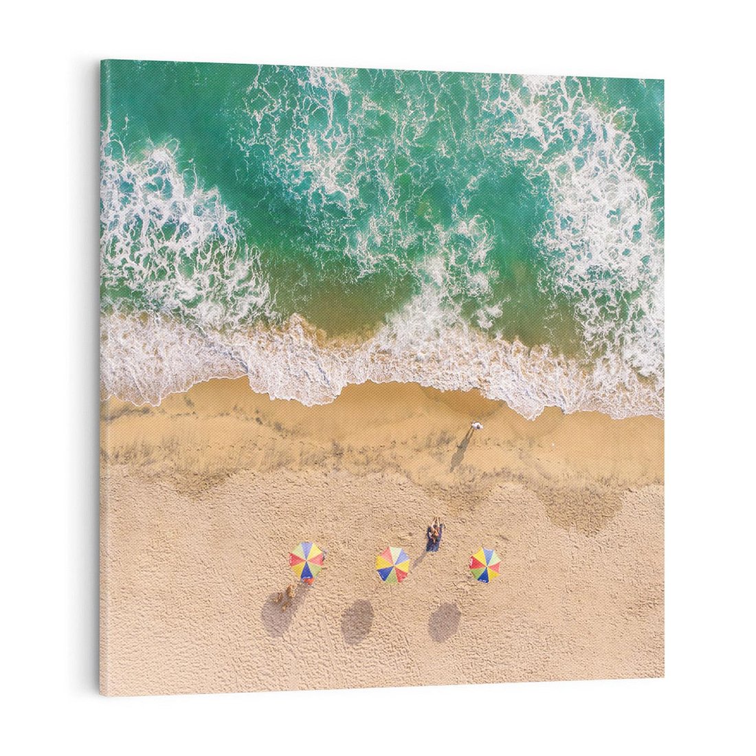 Poczuj atmosferę letnich wakacji za pomocą obrazu przedstawiającego plażę z morzem i parasolami. Przenieś się na piękne plaże i dodaj do swojego wnętrza wakacyjny nastrój.