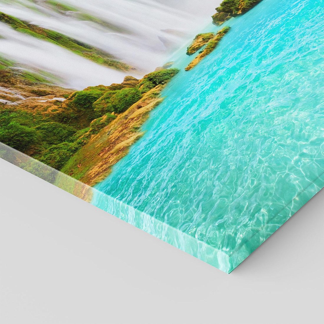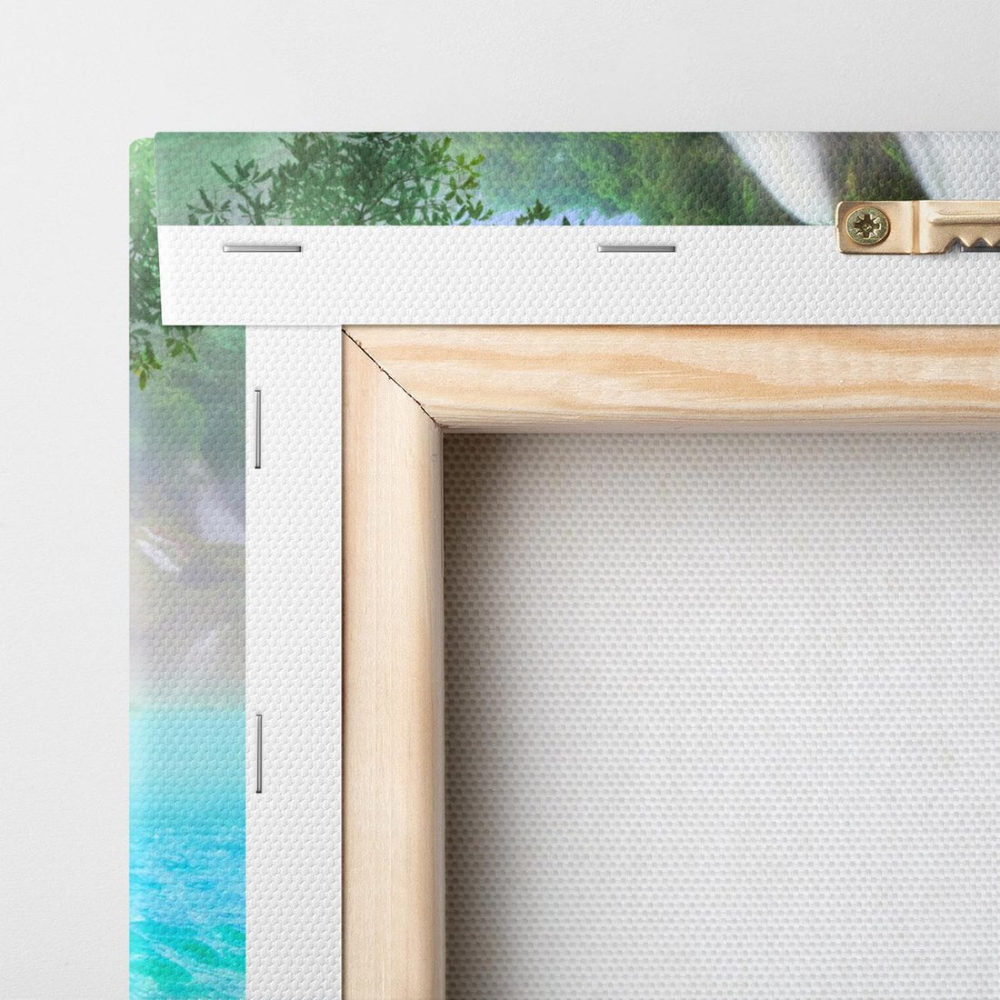 Poczuj siłę natury z tym zachwycającym obrazem przedstawiającym tajemniczy wodospad w głębi dżungli. Szum wody, bujna roślinność i malownicza sceneria przeniosą Cię w świat egzotycznego piękna. Dodaj odrobinę przygody i harmonii do swojego wnętrza.